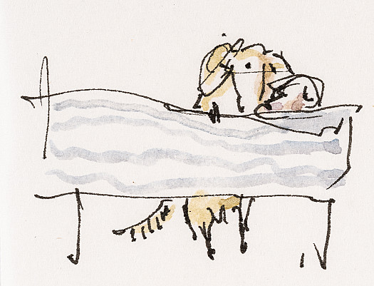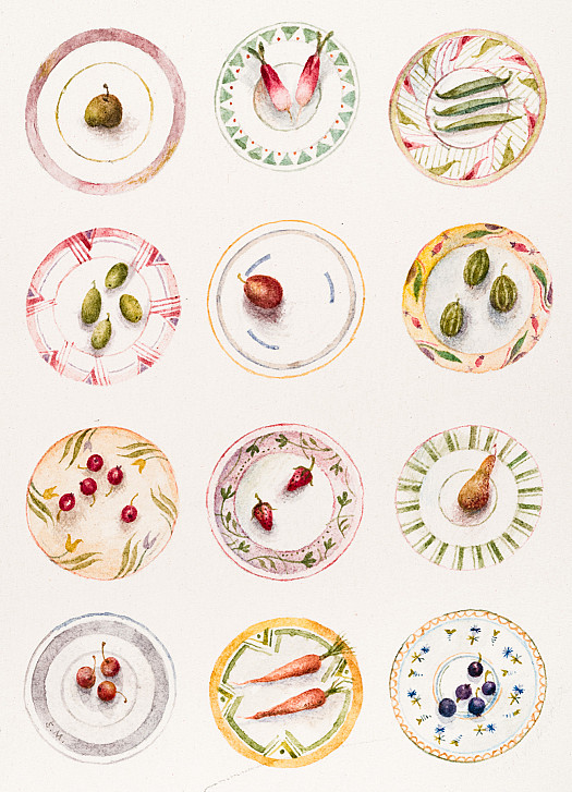 After spending much time in France, on the suggestion of Peter Workman, Sara produced South of France: A Sketchbook, which Workman published in 1990. Combining images, photographs and hand-written texts, it provided a rich scrapbook of a year of experiences, from anthologies of house fronts and shop signs to varied depictions of mouth-watering foods. In the early 1990’s she met her husband, Heinz Propper. They bought a house in France in late 1990 and occasionally came back to London, and moved to West Sussex together in 2006.
