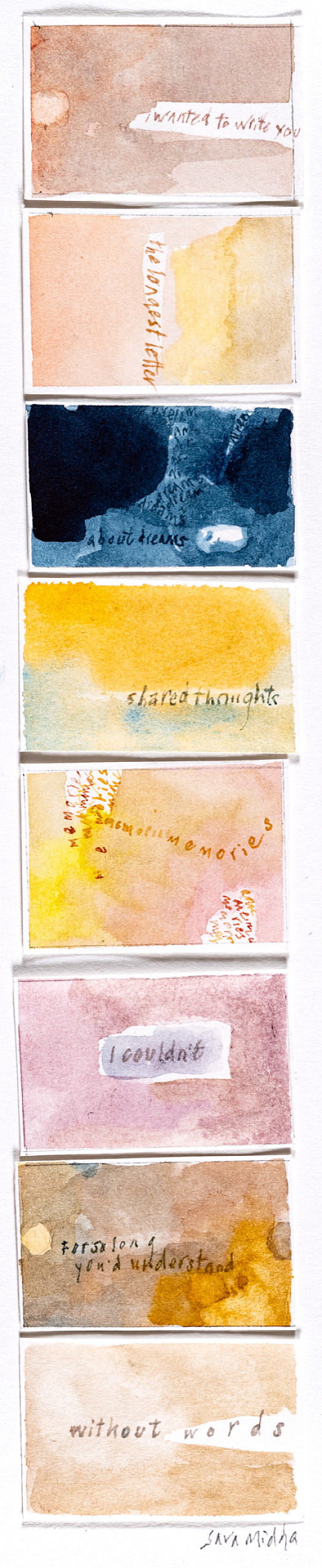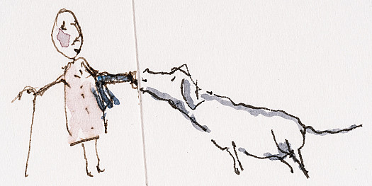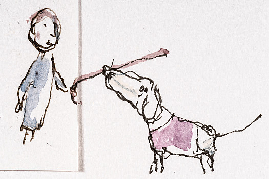 Sara Midda has gained an international reputation for her illustrated books and her product designs. While her work is often enchantingly diminutive in scale, it ranges in character from delicate, jewel-like watercolours to sharply humorous, even surreal, ink drawings. Handwritten words combine actively with the images, as when they evoke the thoughts and emotions of ever characterful figures. If humans and animals are revealed at both their most vulnerable and their most endearing, the world that they inhabit is essentially a garden of Eden. Sara Midda (née Davis) was born in Brighton, in Sussex, on 8 November 1951. Her mother trained as a fashion designer and her parents encouraged her creativity from an early age.