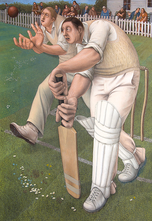 Eric Holt was a draughtsman and painter, who worked mainly in tempera. A slow, meticulous and self-critical artist, he became best known for his highly-wrought figure compositions, including Biblical scenes in modern dress, which led some critics to describe him as a talented follower of Stanley Spencer. Having a strong interest in the countryside, and its crafts and pursuits, he also produced scenes of country and suburban life, and some pure landscapes. His work invariably displays a strong sense of design, vivid characterisation and elements of the surreal. Born in Sutton, Surrey, on 12 May 1944, Eric Holt was half-brother to the painter, Ronnie Copas (1936-2017). From as early as the age of 13, he was focussing on art by taking a special course at Sutton East School.