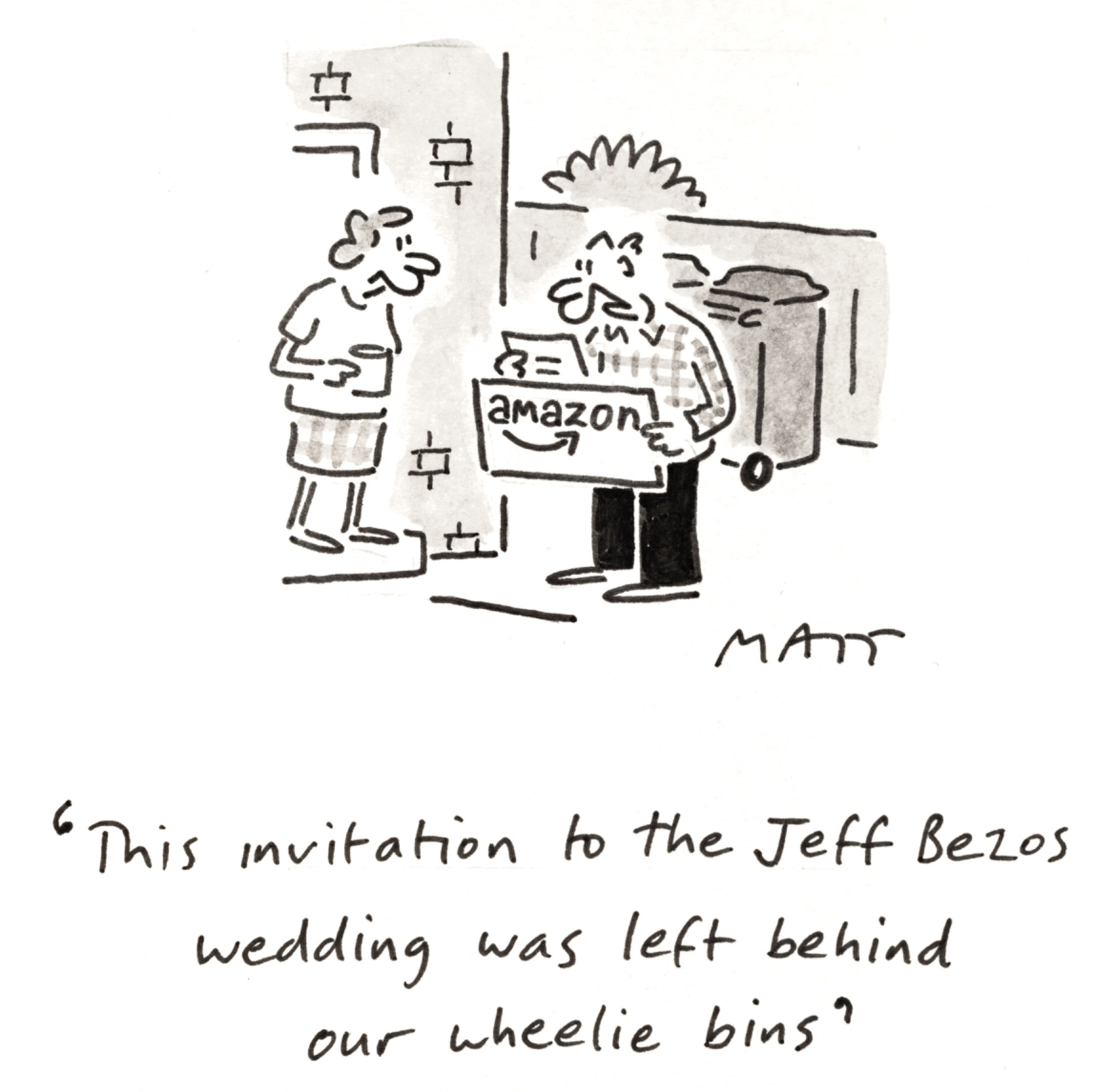 This invitation to the Jeff Bezos wedding was left behind our wheelie bins
