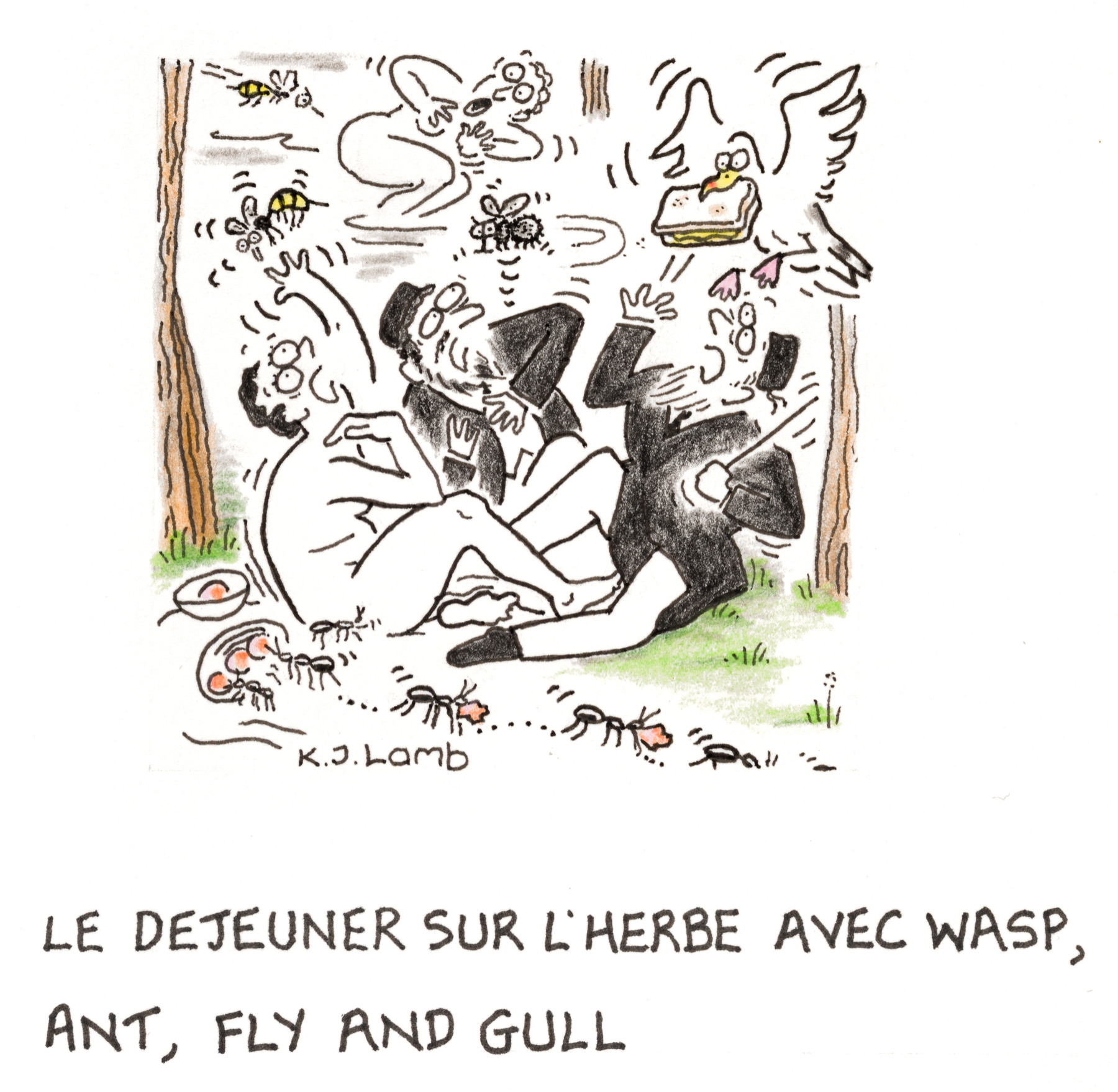 Le Dejeuner sur l'herbe avec wasp, ant, fly and gull