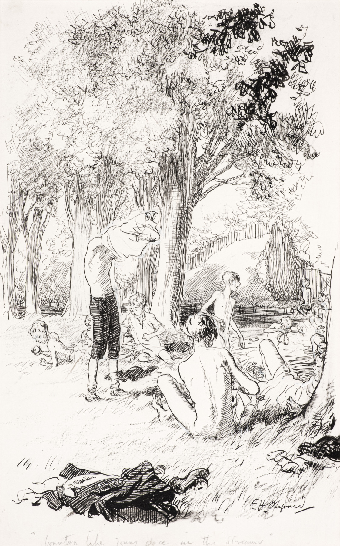 Signed and inscribed "wanton like young dace in the streams" Signed and inscribed with artist's address on reverse