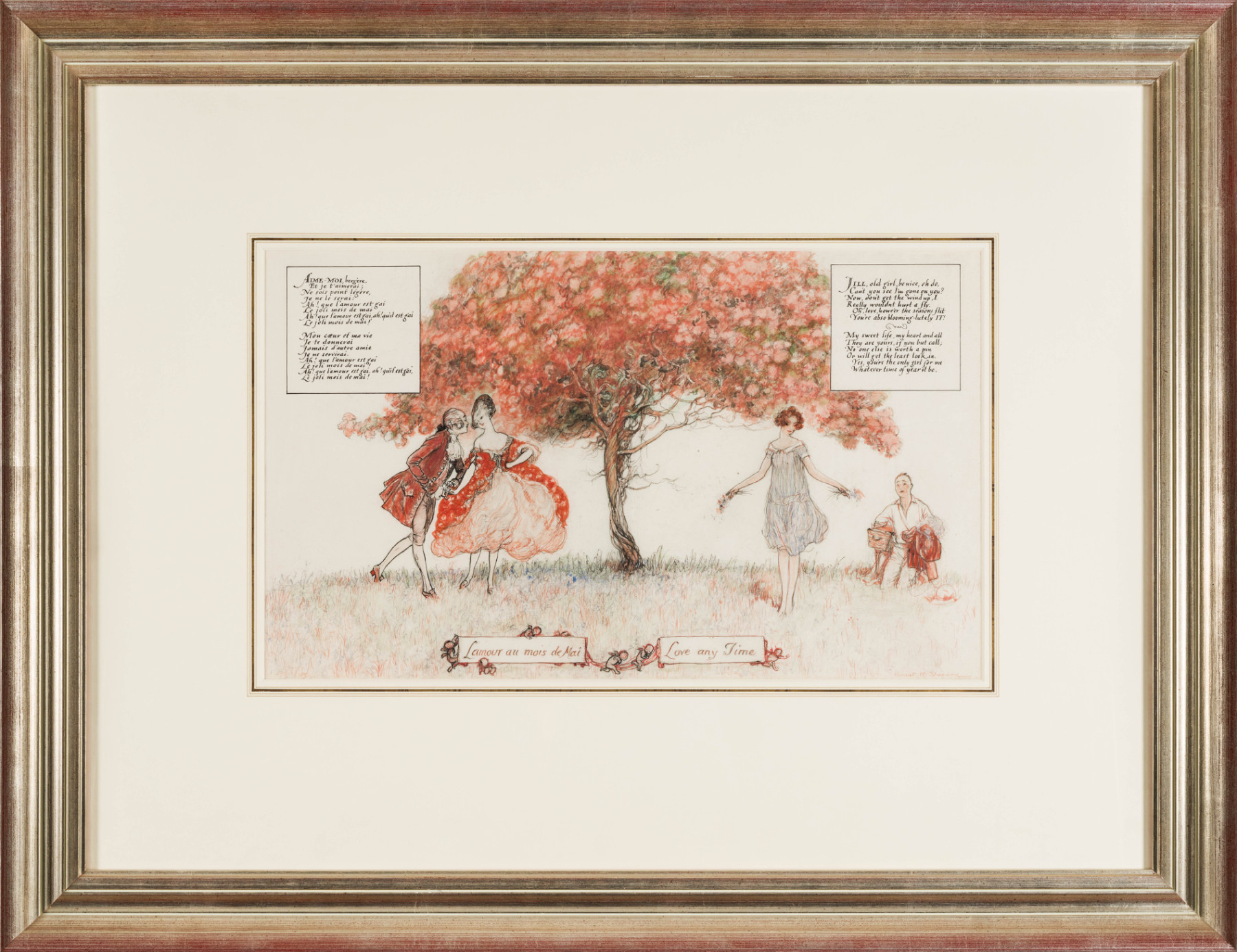 Inscribed 'l'amour au mois de mai, love any time' and with two poems Signed on reverse