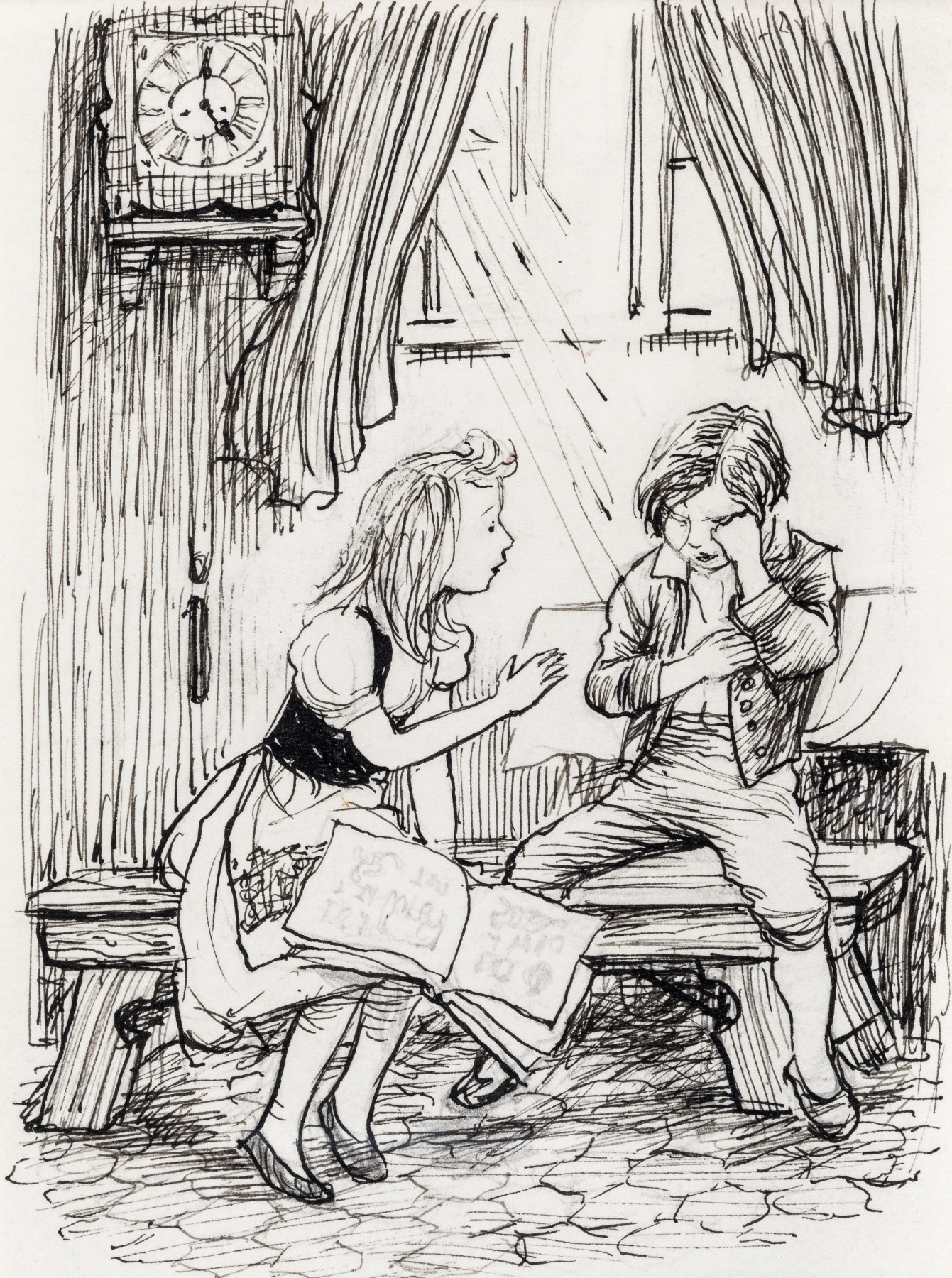 Ernest Howard Shepard - Kay and Gerda Sat Looking At the Picture-Book with the Animals and Birds In It, and It Was just At That Moment - the Clock Was Striking Five In the Great Church Tower - That Kay Said, 'Oh! There's a Pricking In My Heart! and Now I've Got Something In My Eye!'