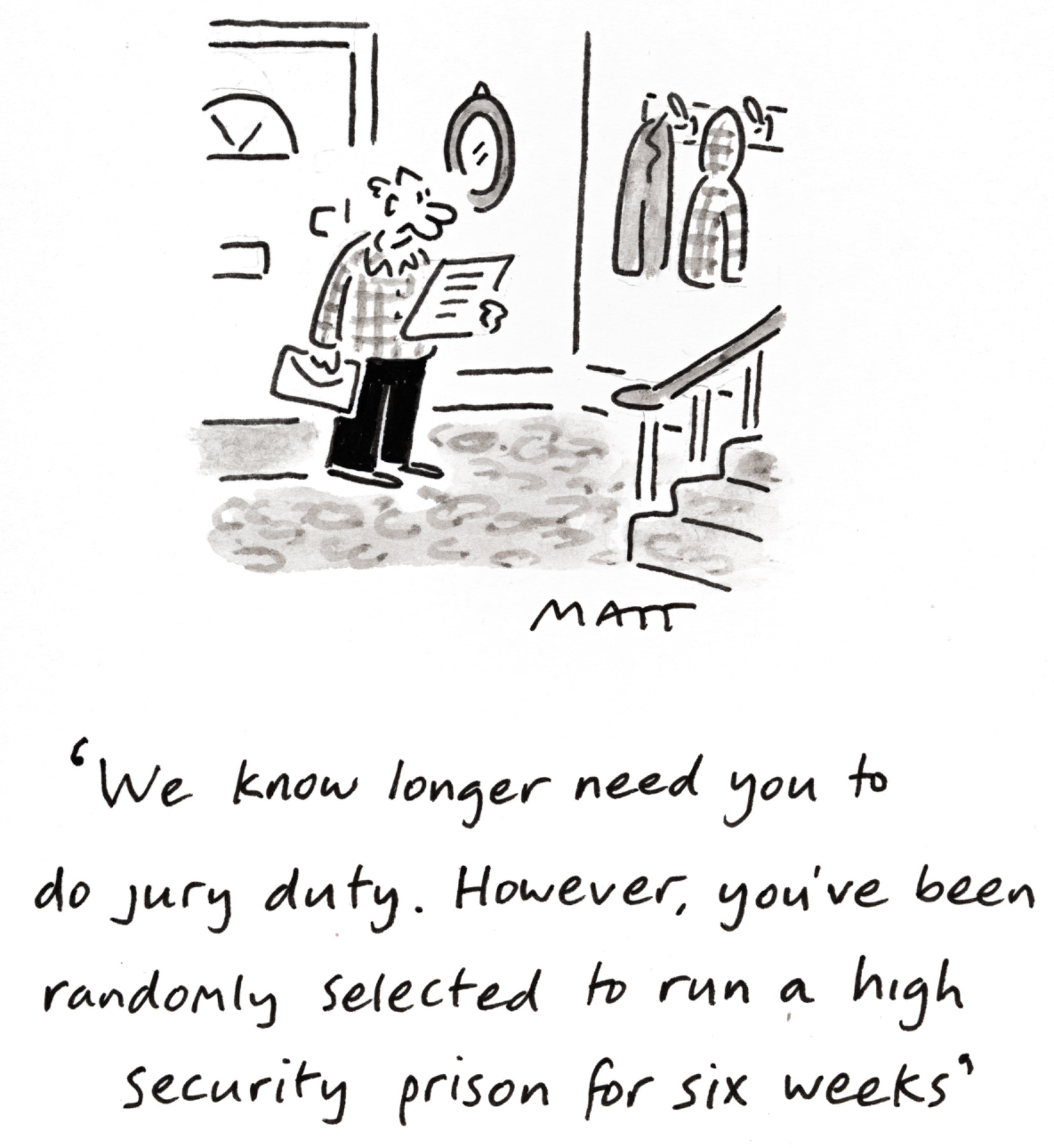 We no longer need you to do jury duty. However, you've been randomly selected to run a high security prison for six weeks