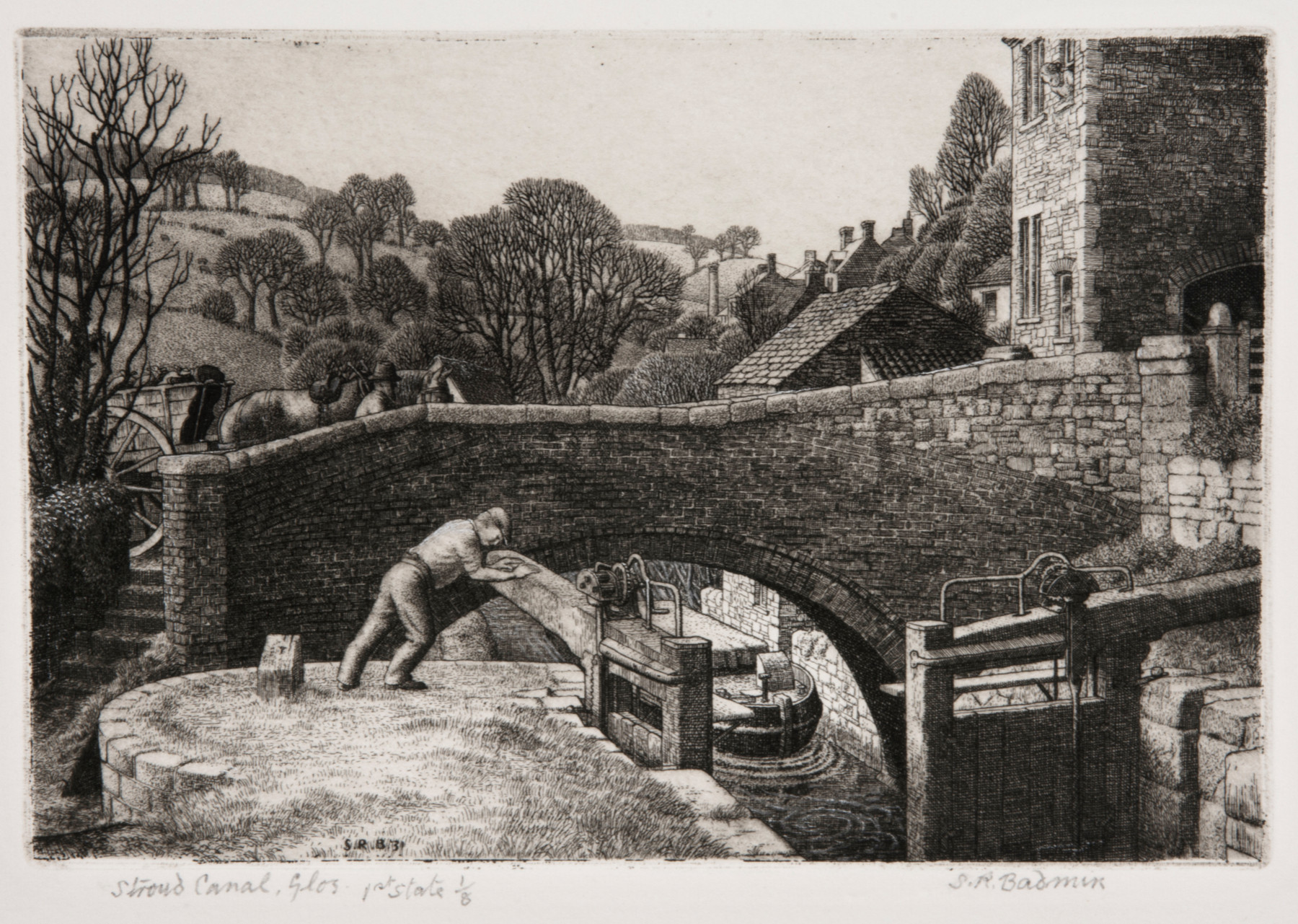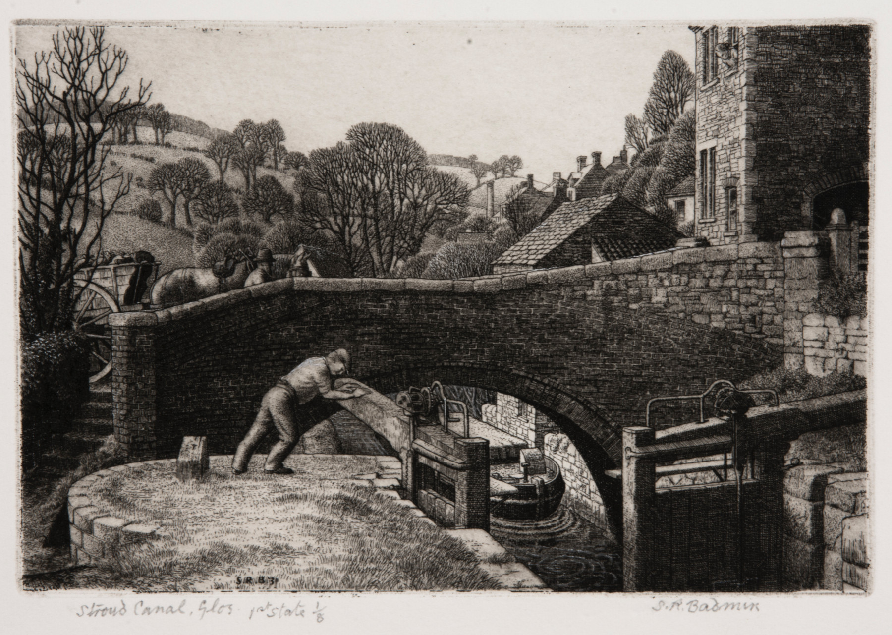 Signed, inscribed with title and '1st state 1/8' Signed with initials and dated '31 in plate Signed, inscribed 'Bridge and lock on the Stroud Canal, Glos. 1st state 1/8, printed by the Merrihill Press, Dyfed' below mount