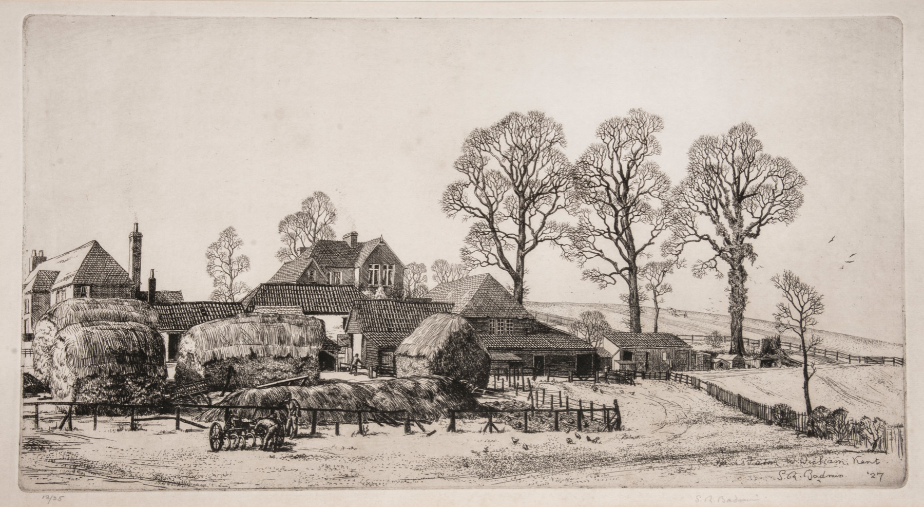 Signed inscribed 'Hawes Farm, W Wickam [sic] Kent' and dated '27 in plate Signed and numbered 12/35 Inscribed with title below mount