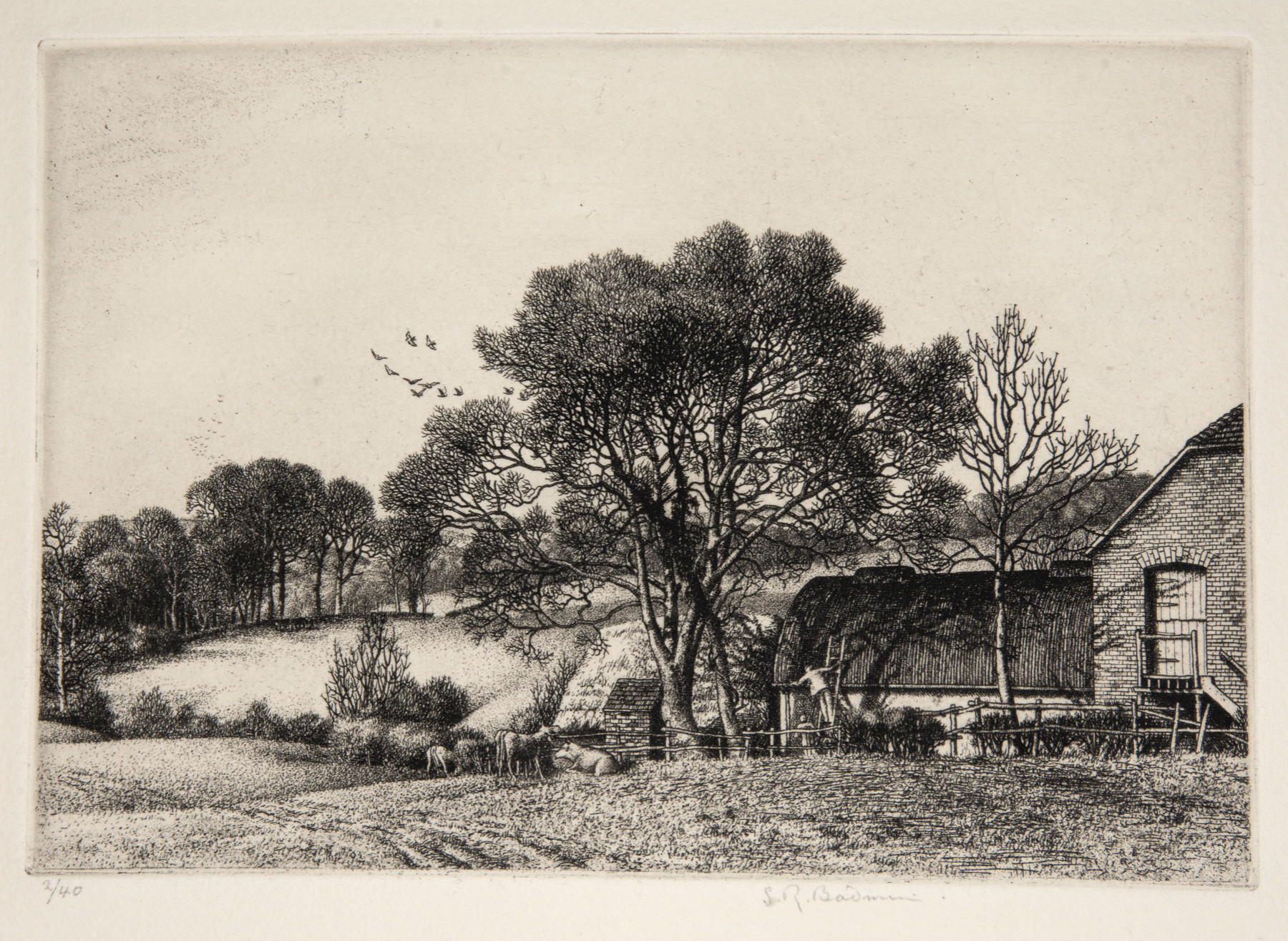 Published by the Twenty One Gallery in 1929. Artist's proofs were done in warm black ink on heavy Whatman paper. This etching was used to illustrate the Colnalghi advertisement in Country Life for their 1975 exhibition entitled 'The Early Etchings of Graham Sutherland and Romantic Landscape Etchings and Woodcuts in England from 1850-1931'