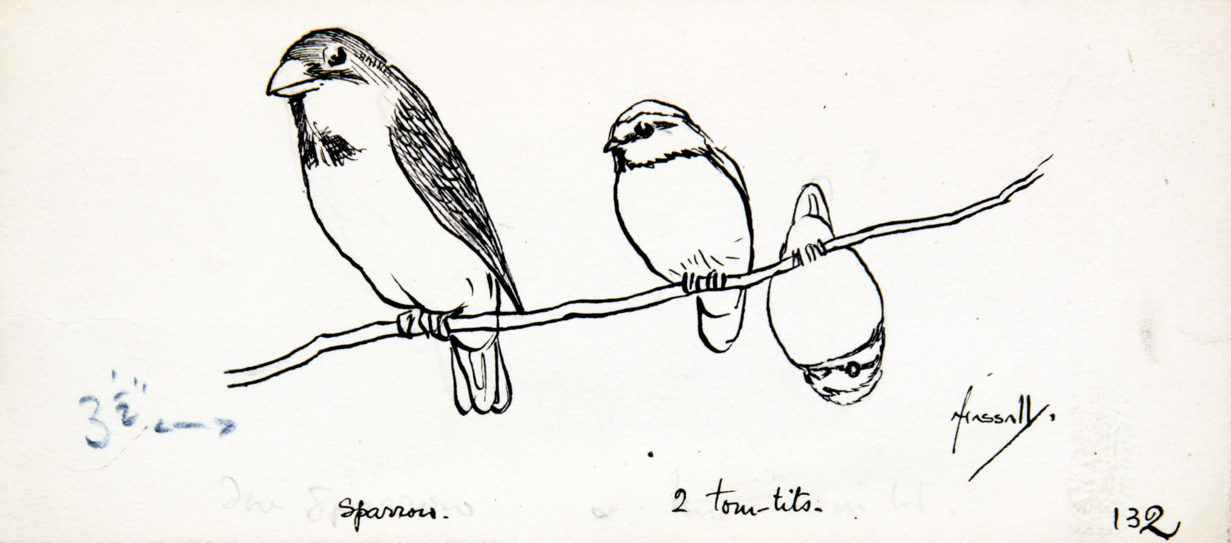 Signed and inscribed 'Sparrow' and '2 tom-tits'