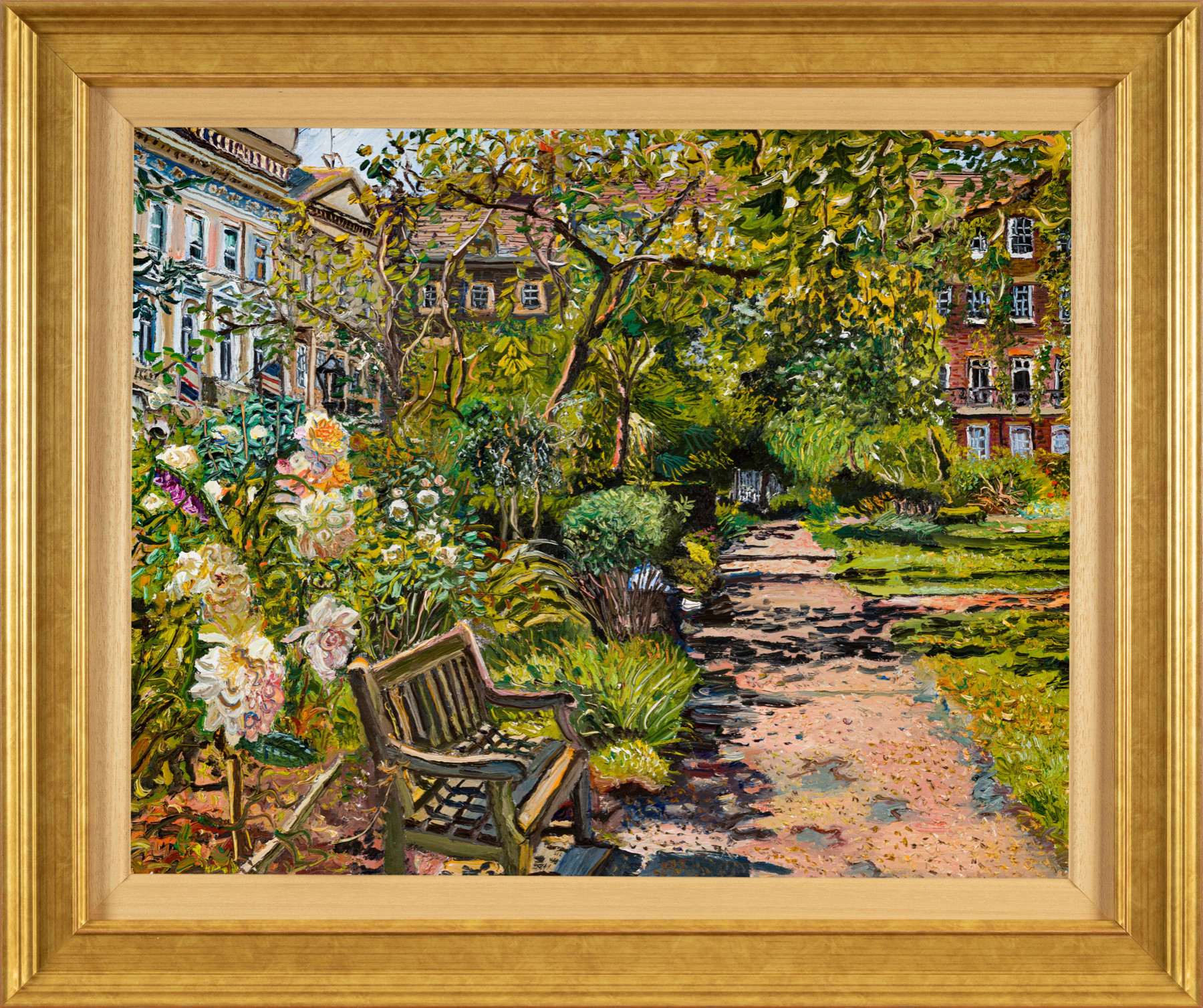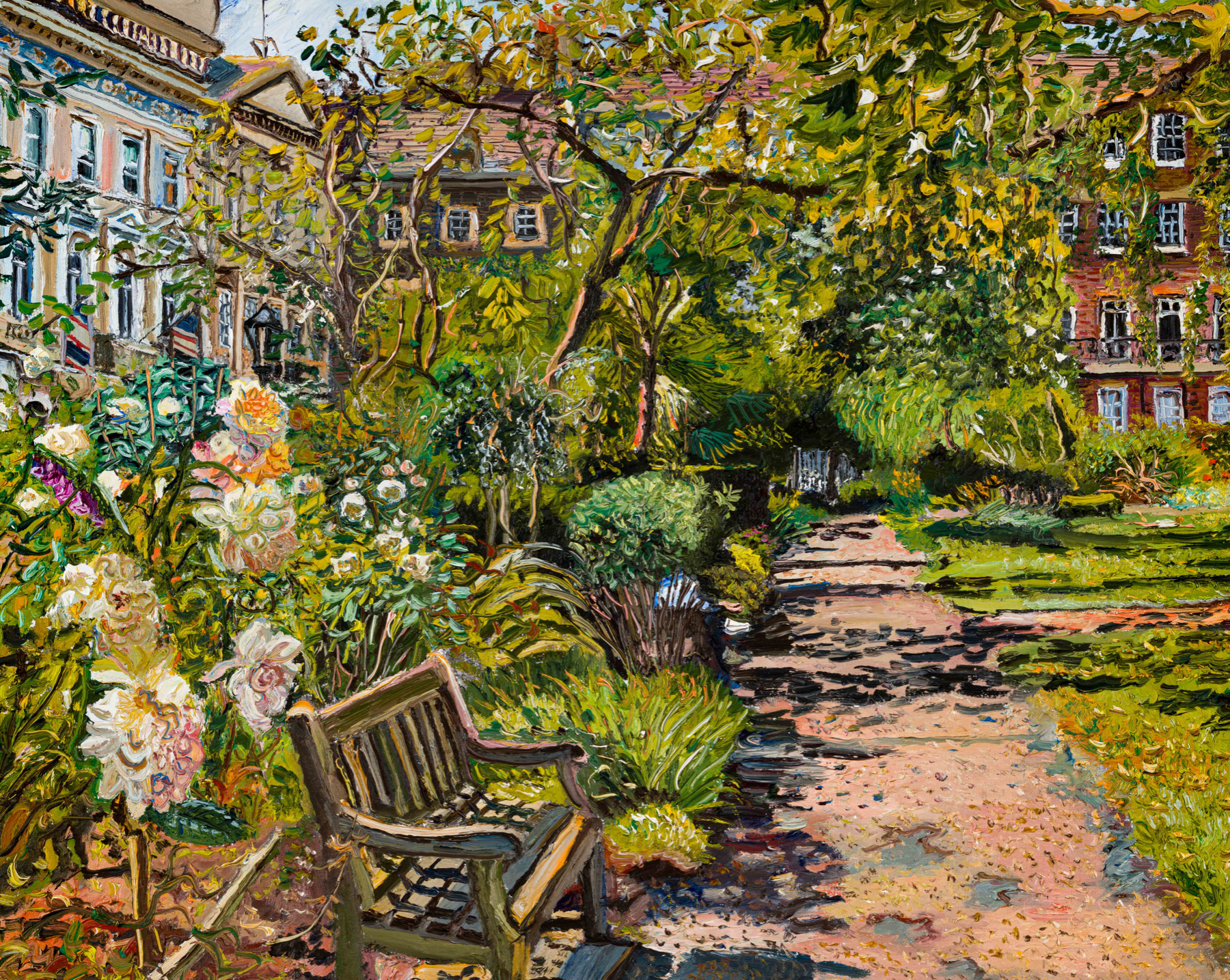 'Finished this small painting in St James's Square, had a lovely day. I saw the Soutine and British painting at Piano Nobile Gallery then saw Cedric Morris at Philip Mould Gallery, then went back to Chris Beetles Gallery where there are so many great paintings and drawings to see, and went out painting with Jack Russell in Mount Street Gardens...'