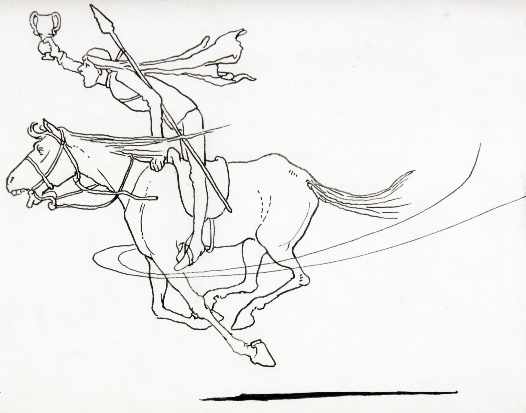 Inscribed 'And so he darted on with the goblet still in his hand' and story title below mount
