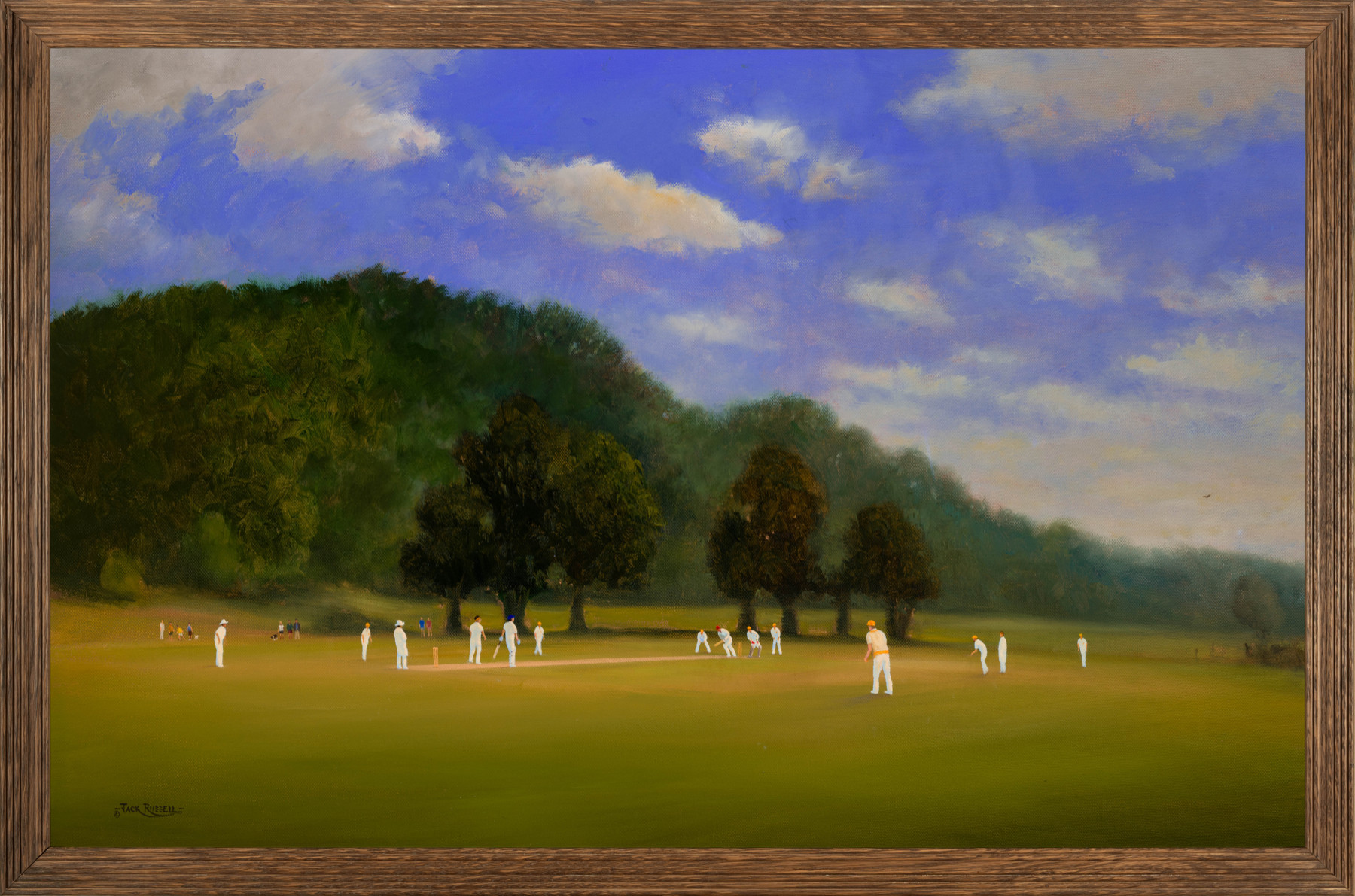 "I find typical, quintessential English cricket grounds irresistible. Thanks to Annie Chave, County Cricket Campaigner, founder of County Matters Magazine and all round great cricket person, I had the chance to paint the Teign Valley ground down in Devon. It's basically in the middle of nowhere - or at least it feels that way when you're there. Hidden away from the hustle and bustle, only accessible via a thin farm track bordered by thick bushes (the slimmer your car the better!), rickety old pavilion, and no electricity, but this valley of delight is local village cricket at its best. It's not just the ambience of the place that proves it, but in support they provide one of the largest and most gorgeous cricket teas in the country!