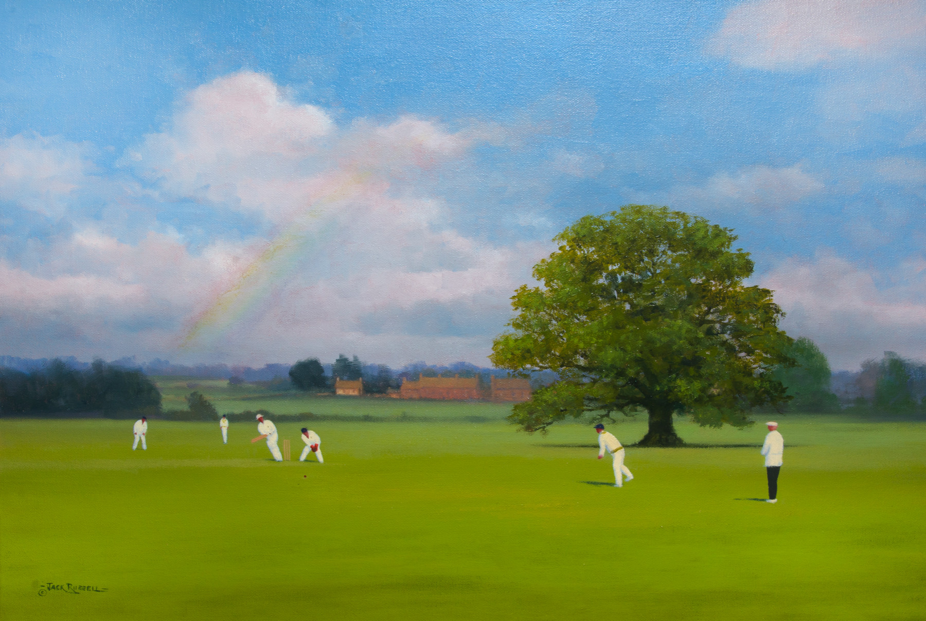 In order to keep a little fitness going during 'lockdown' I walked regularly past this field. Admiring the great oak tree it occurred to me that this would be an ideal place for a game of cricket, if it were allowed! As if by magic one afternoon, fittingly, a rainbow appeared. Very appropriate for the times we are living through at present.