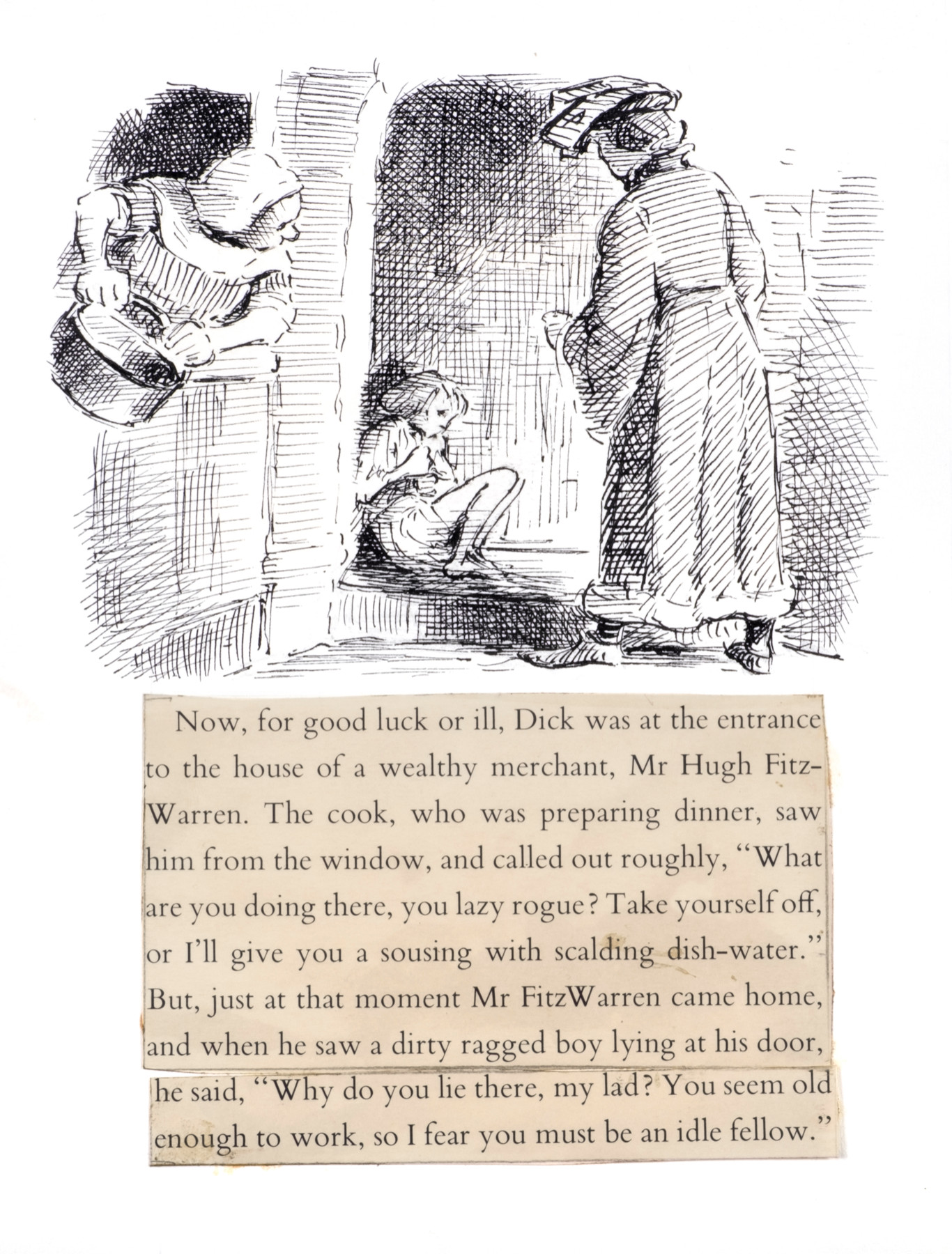 Now, for good luck or ill, Dick was at the entrance to the house of a wealthy merchant, Mr Hugh FitzWarren