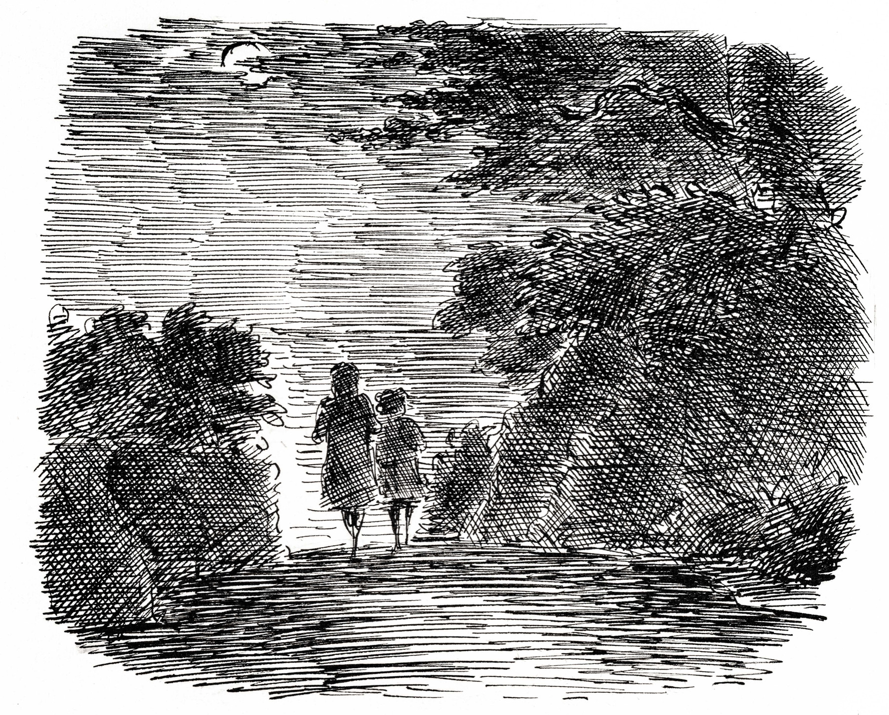 'Naomi found it was much easier to be brave if you had company. It was terrible dark on the road and their feet sounded dreadfully noisy, but because Penny was there it was not terrifying like walking through the back garden', page 182