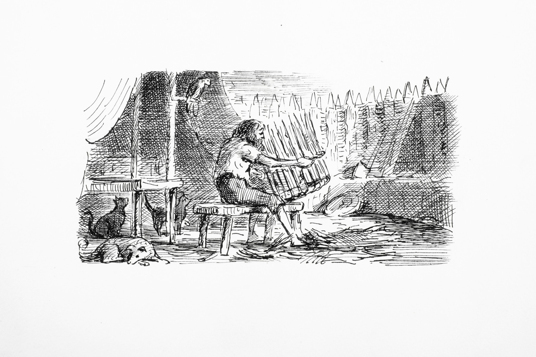 'I reposed myself here for a week; to rest and regale myself after my long journey; during which most of the time was taken up in a weighty affair of making a cage for my Poll, who began now to be mare domestic, and to be mighty well acquainted with me.' page 119