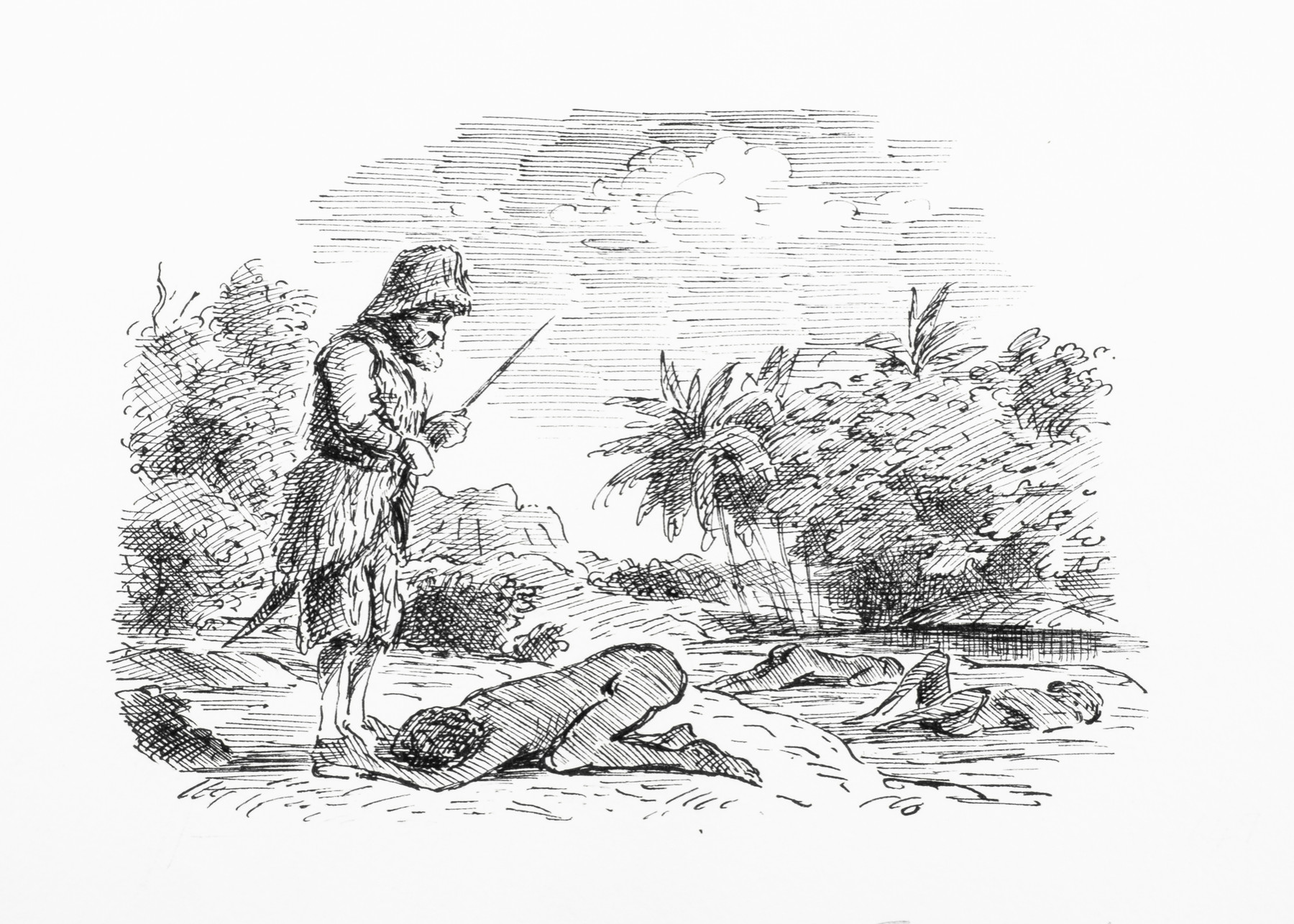 '…I gave him all the signs of encouragements that I could think of; and he came nearer and nearer, kneeling down every ten or twenty steps, I token of acknowledgement for my saving his life.' page 200