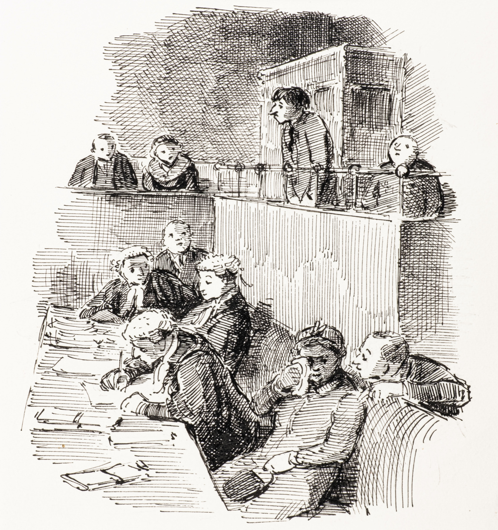 Probably drawn for but not illustrated in Henry Cecil, Brief to Counsel, London: Michael Joseph, 1958