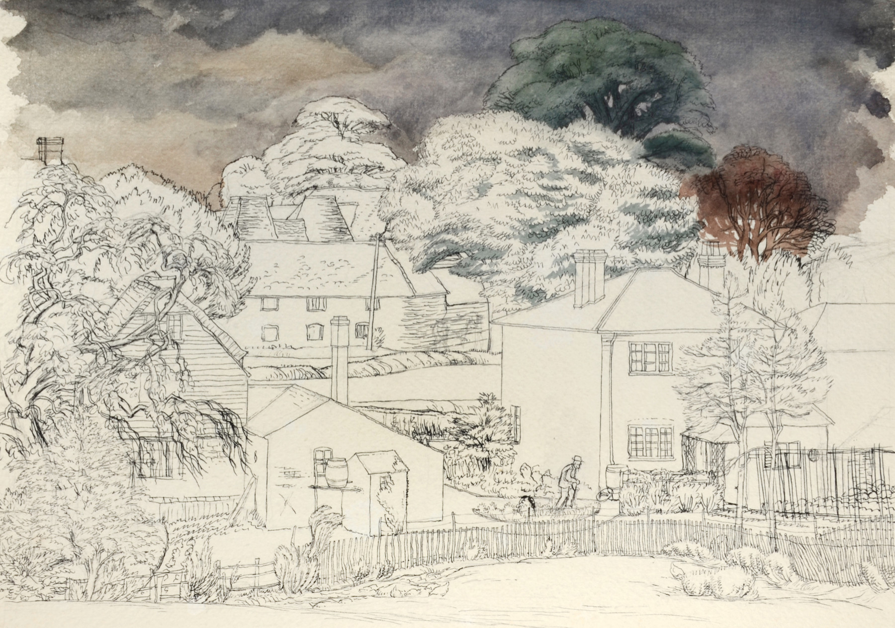 Ink with watercolour and pencil