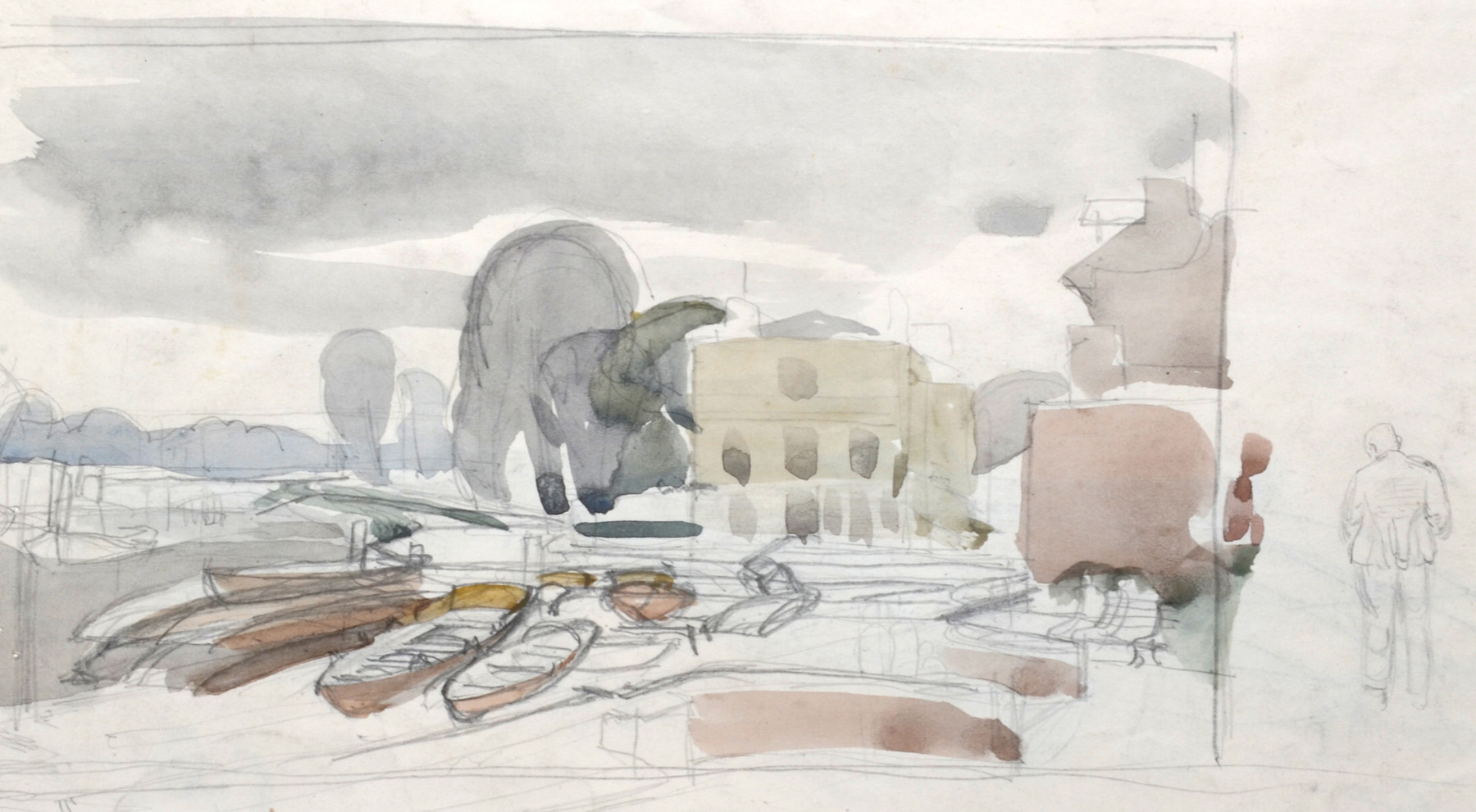 Preliminary drawing for 'The Season Commences – Richmond' exhibited at the Royal Society of Painters in Water-colours, Summer 1932, no 48