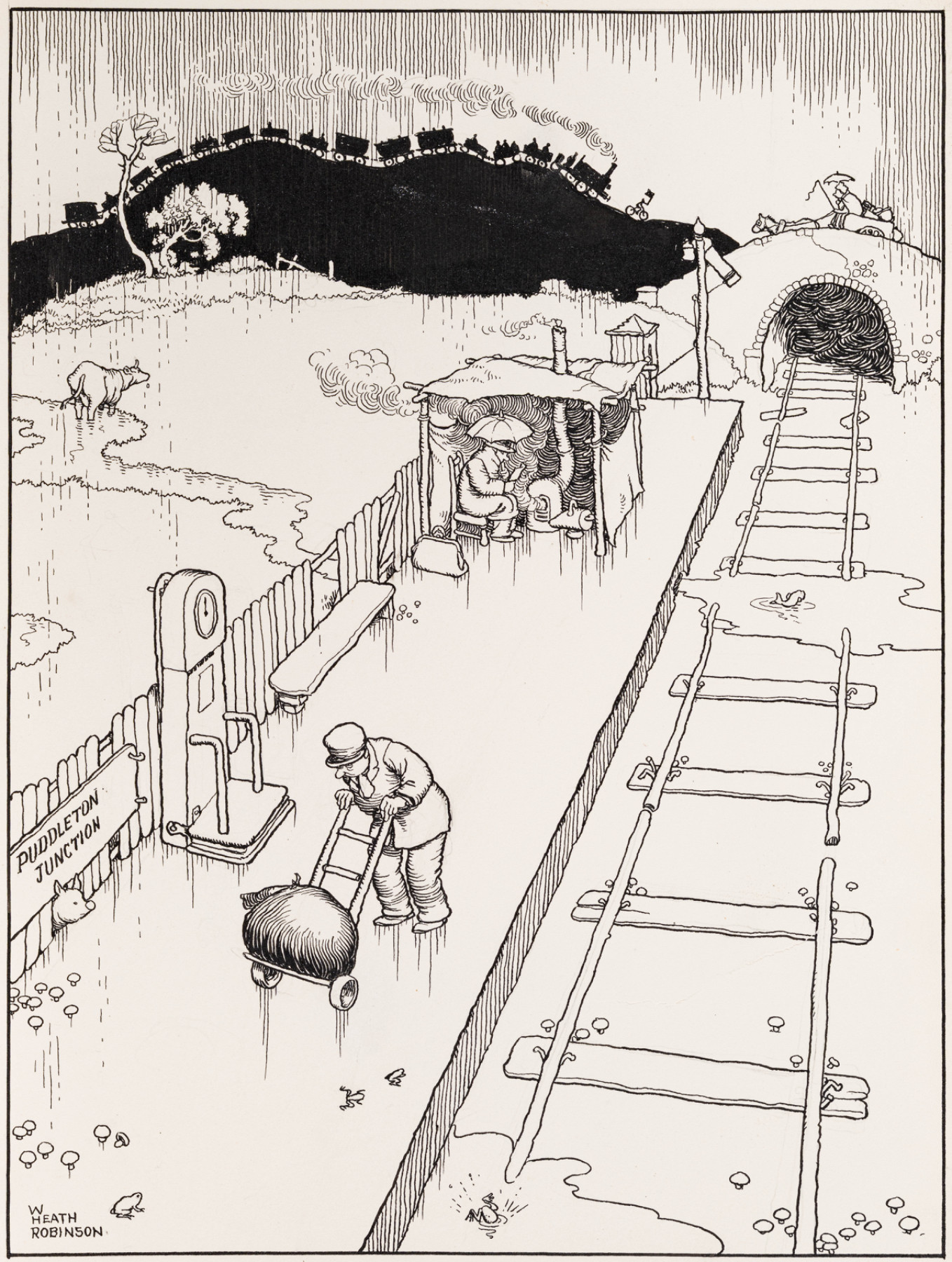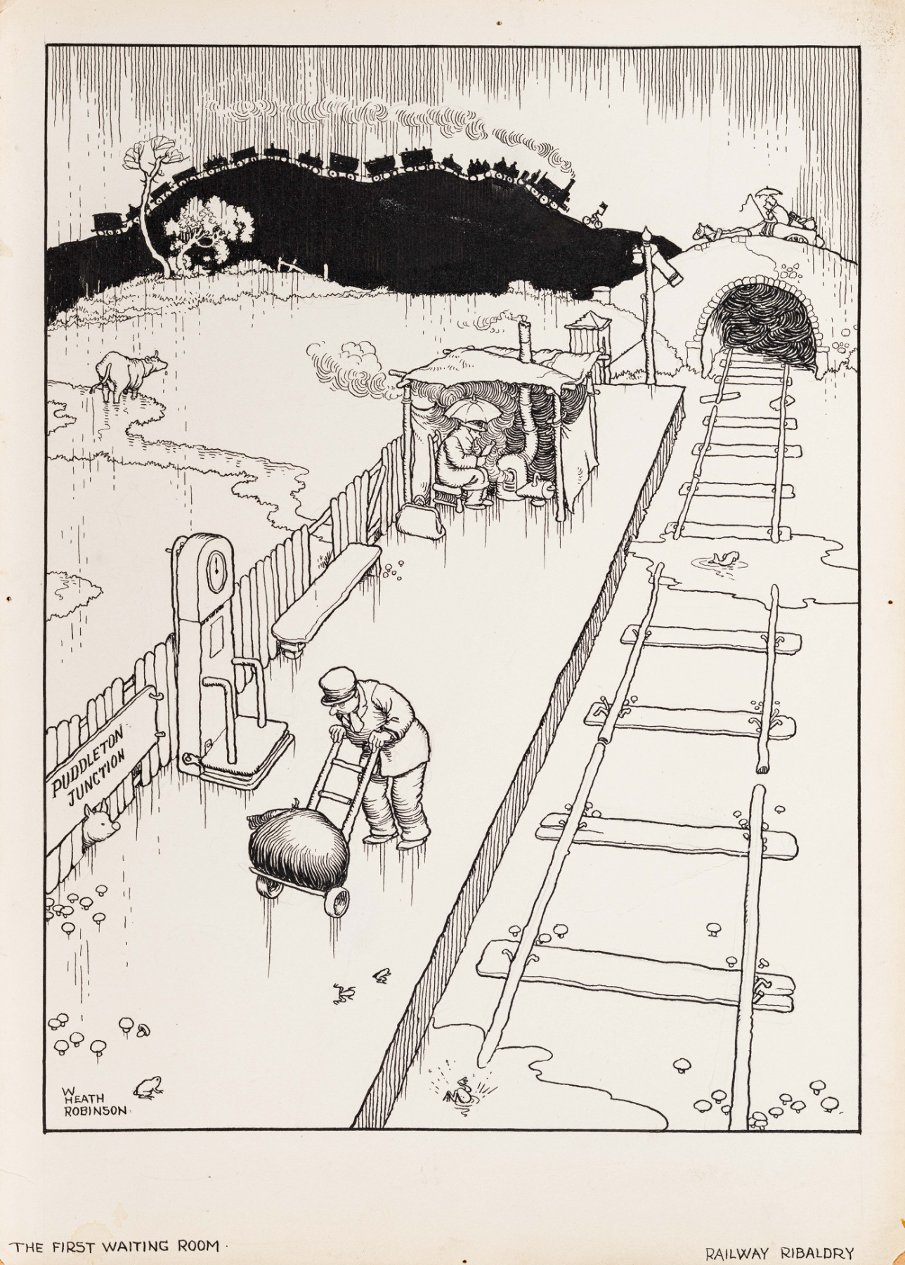 W Heath Robinson, Railway Ribaldry, London: Great Western Railway, 1935, page 31