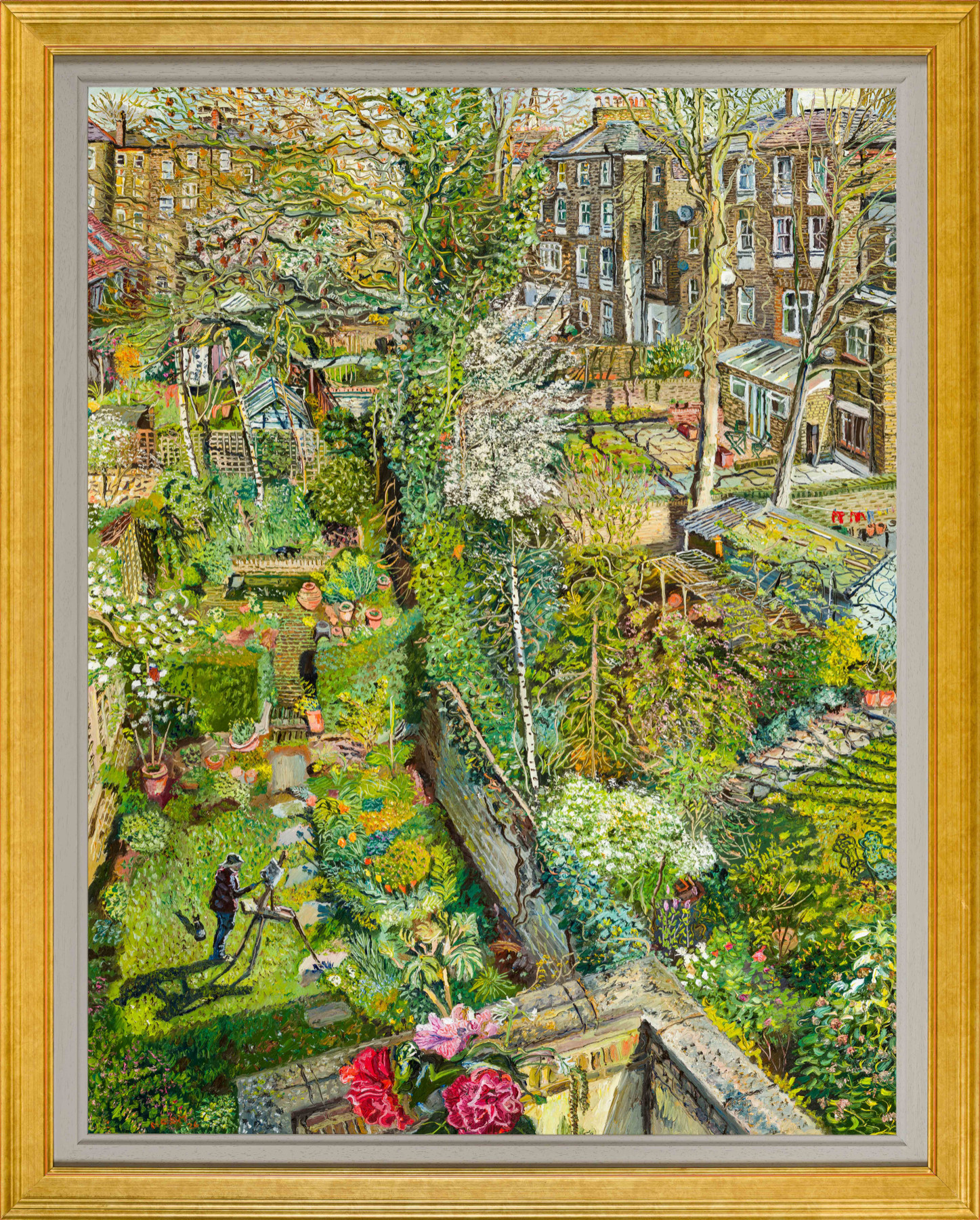 'Painted on sunny mornings between 8.30 to 10.30 over the last month, the view from my window. I couldn’t resist adding a few camelias in a jar on the windowsill picked from local bushes. Everything is coming out now and I feel like I want to paint the whole view again, but I just love getting out and painting in the sun. Spring does bring hope and thoughts of love, I remember going on a CND (campaign for nuclear disarmament) March with my parents at Easter in the 1960s, and a love-in at Hyde Park...'