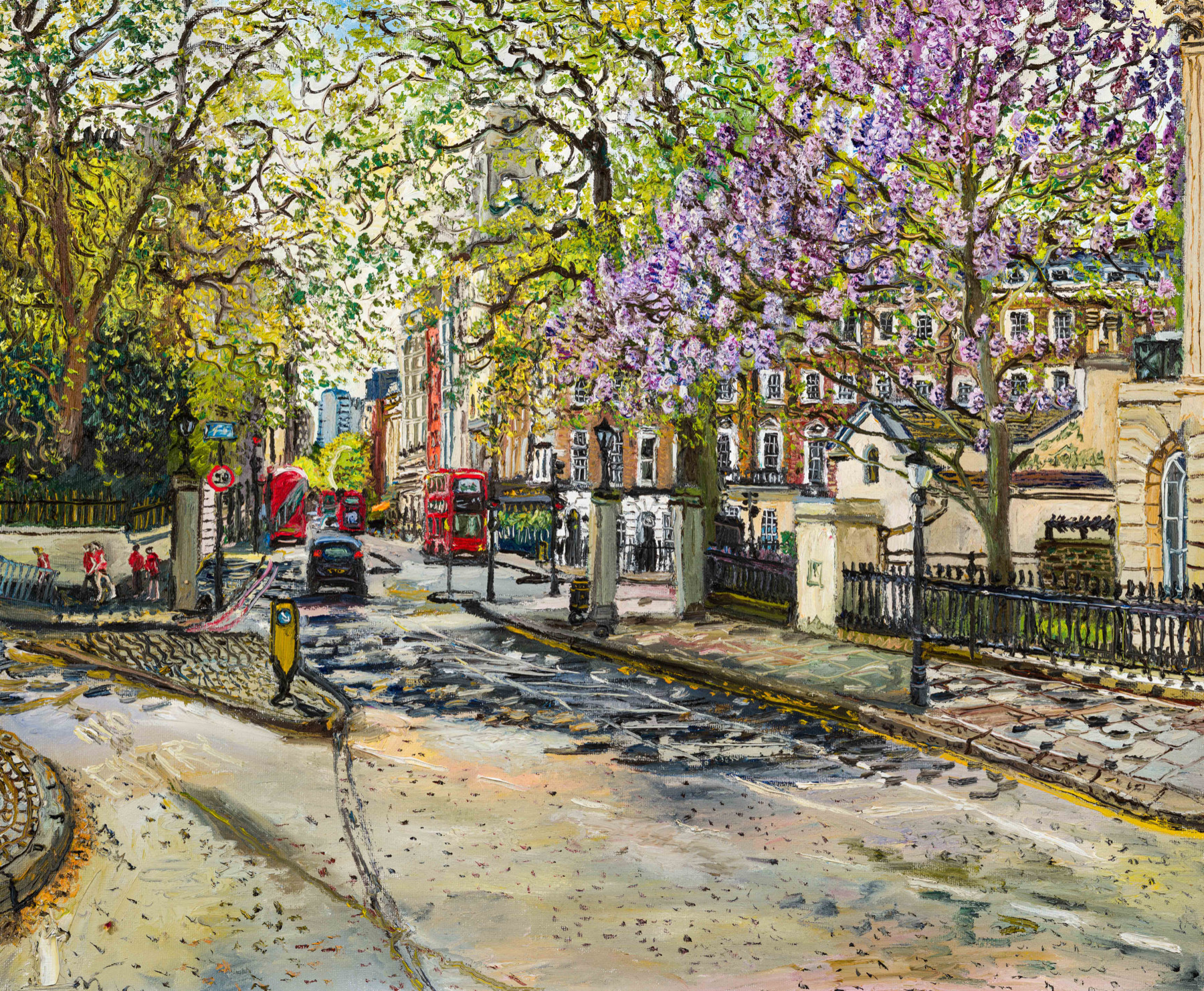 'Finished this painting of a foxglove tree at Clarence Gate around Regents Park. Saw it a week ago when my son drove me past, fell in love with the tree (that’s the sort of thing you fall in love with when you’re nearly 67...) Anyway I also love that bit of London, with busy Baker Street in the distance.'