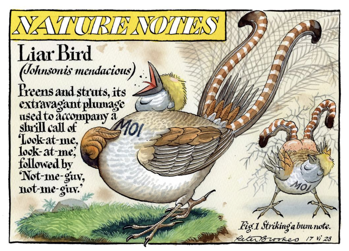 "Johnson's a liar bird, well, for obvious reasons, and the privileges committee had just published its report stating he repeatedly misled parliament about partygate." Peter Brookes