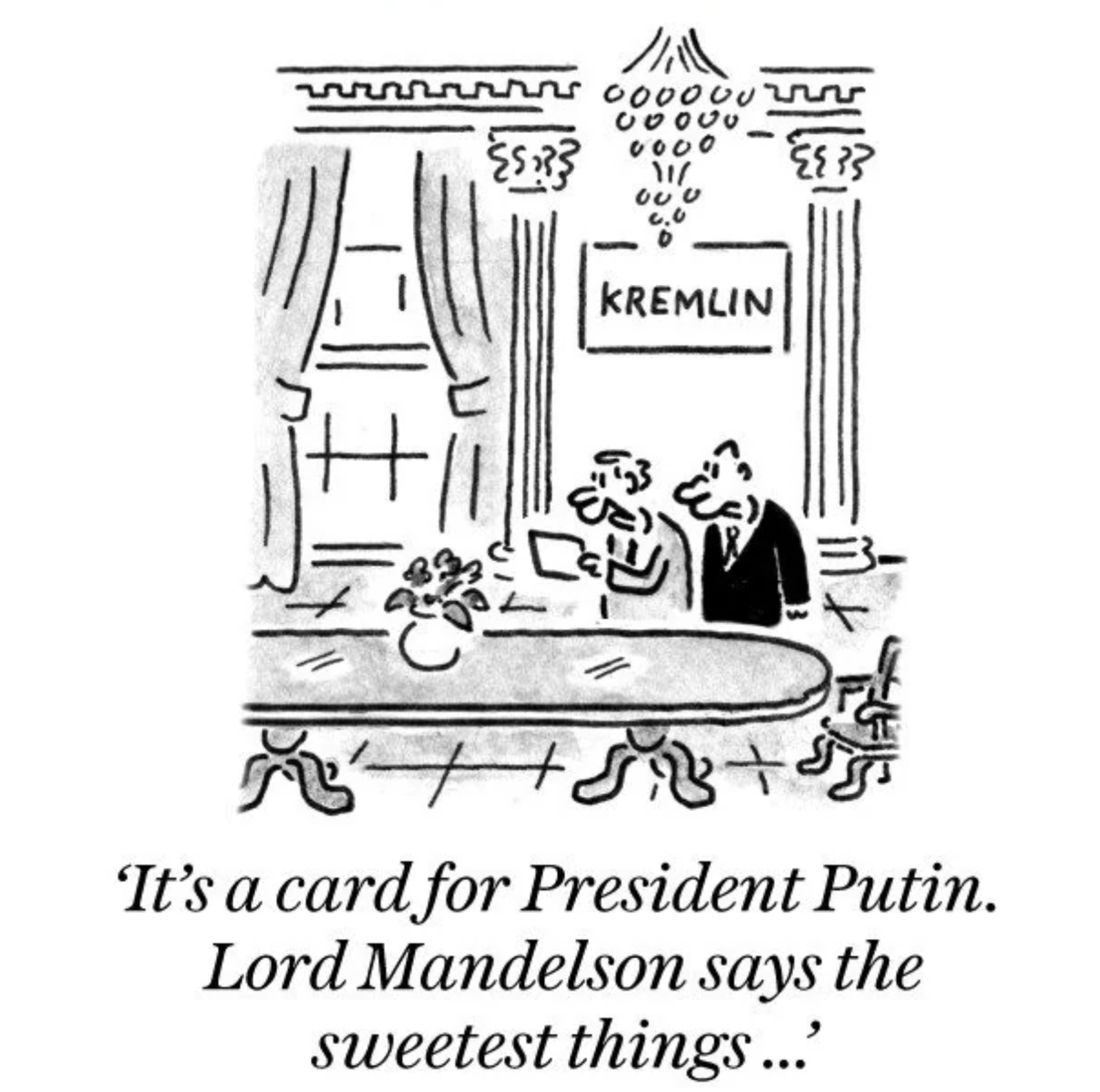 It's a card for President Putin. Lord Mandelson says the sweetest things ...