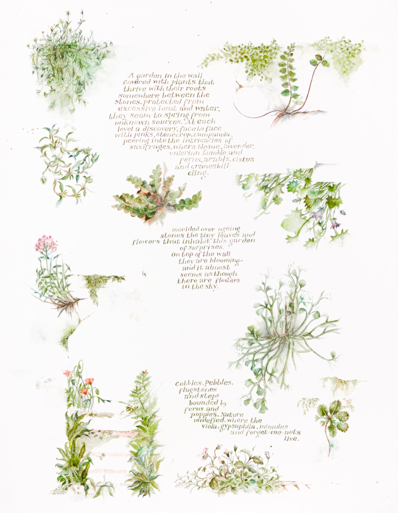 A garden in the wall covered with plants that thrive with their roots somewhere between the stones ...