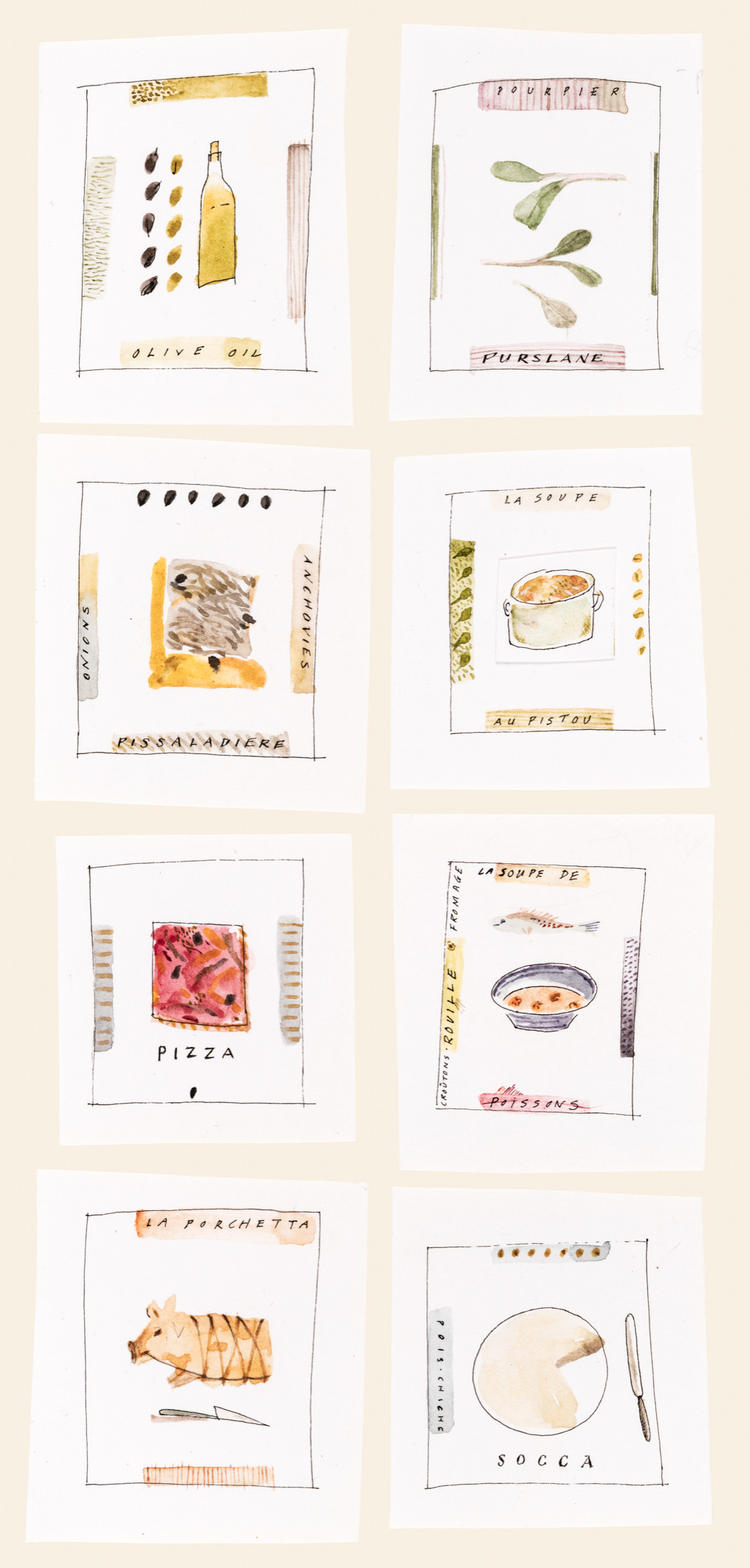 Sara Midda, Sara Midda's South of France: A Sketchbook, New York: Workman Publishing, 1990, pages 98-99