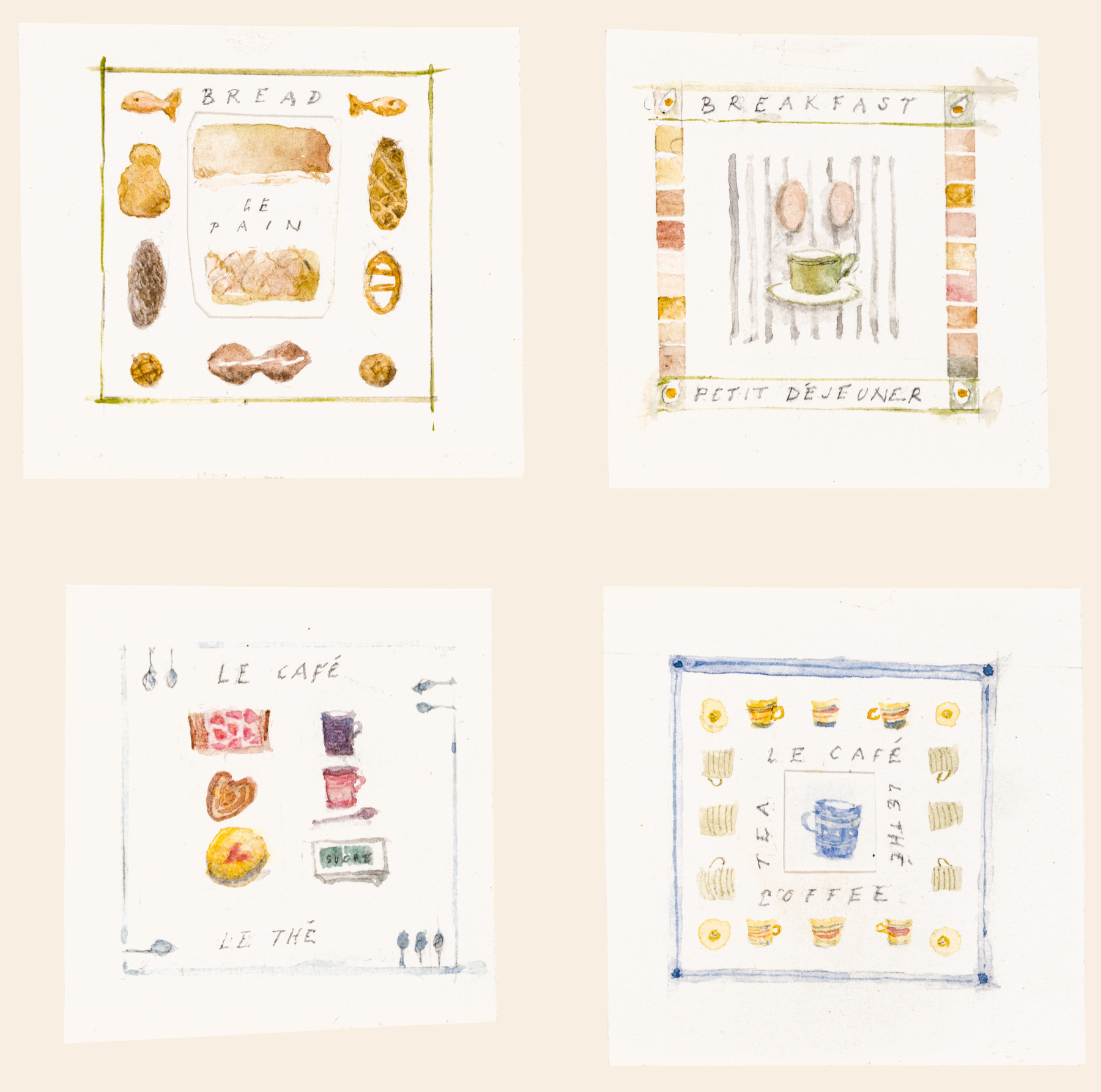Four panels, each measuring 2 1/2 x 2 1/4 inches