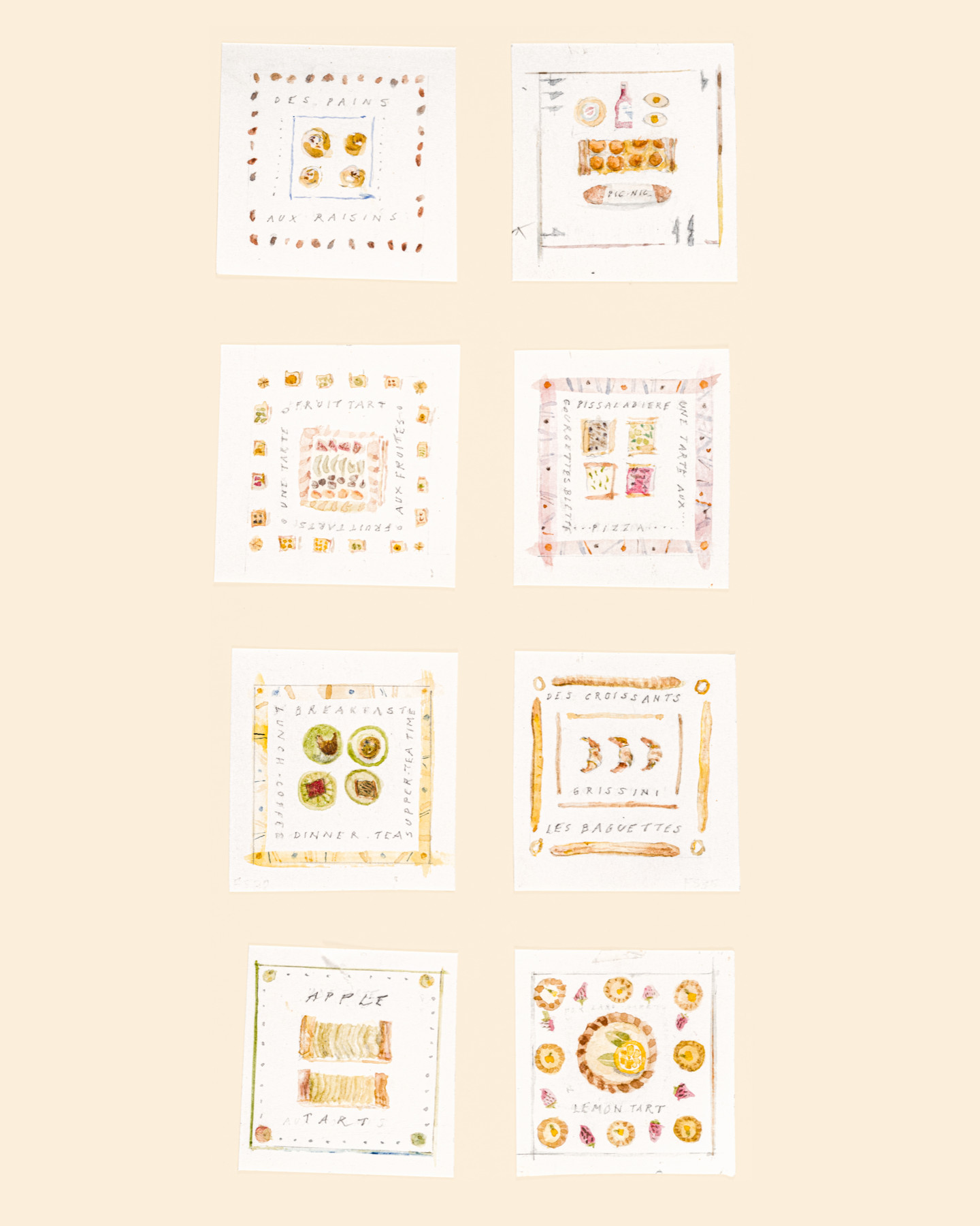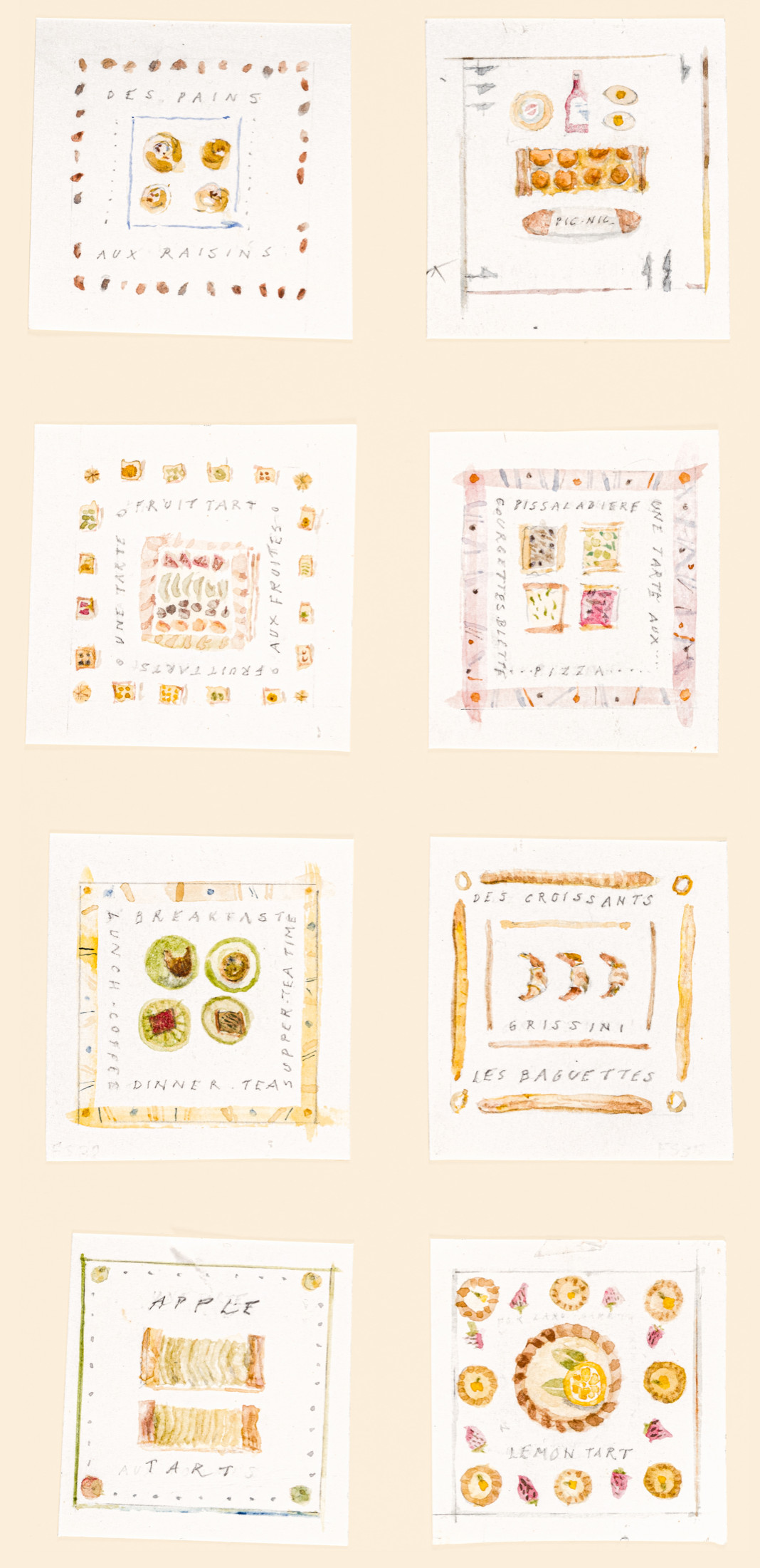 Drawn for but not illustrated in Sara Midda, A Bowl of Olives: On Food and Memory, New York: Workman Publishing, 2014, [Lemon Tart panel illustrated page 51]