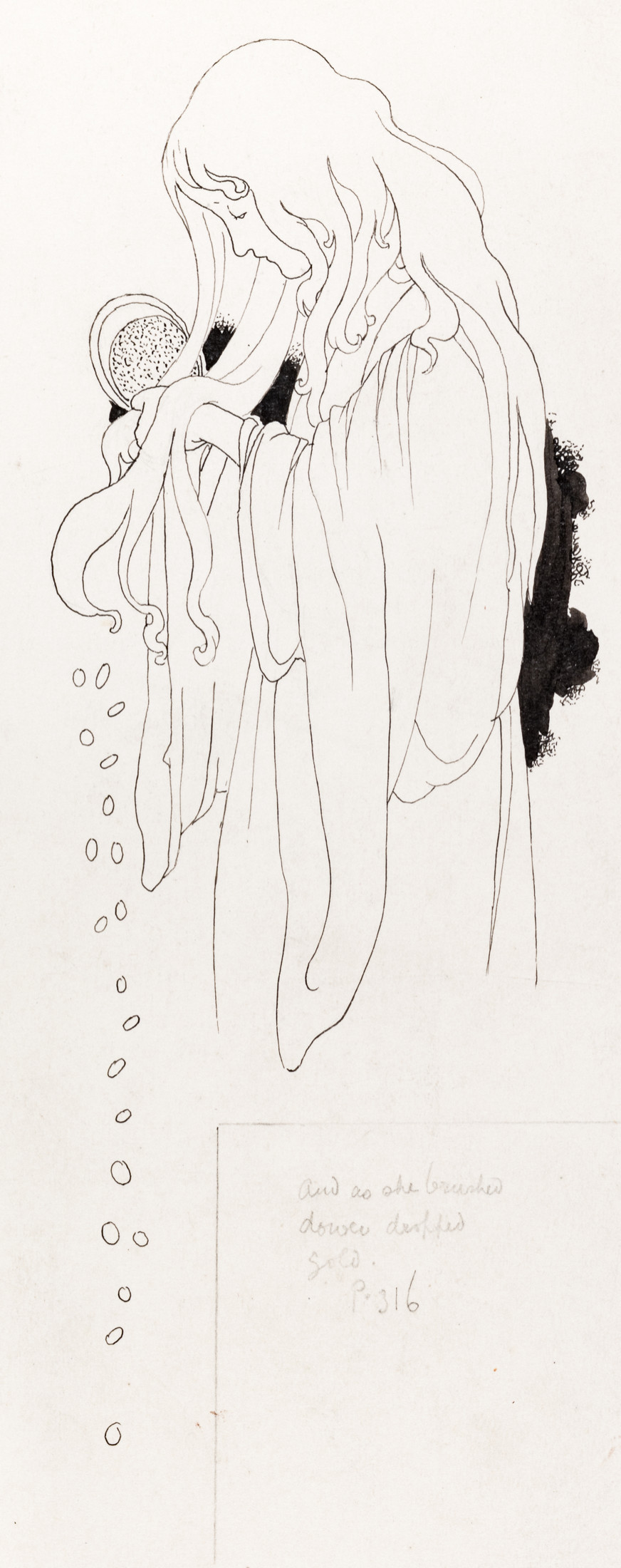 Walter Jerrold [editor], The Big Book of Fairy Tales, London: Blackie and Son, 1911, page 284, 'Bushy Bride' [published in black and white]