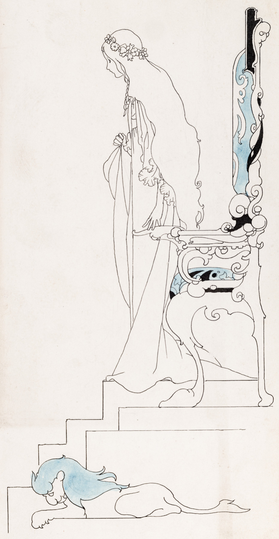 Walter Jerrold [editor], The Big Book of Fairy Tales, London: Blackie and Son, 1911, page 239, 'The Fair One with Golden Locks' [published in black and white]