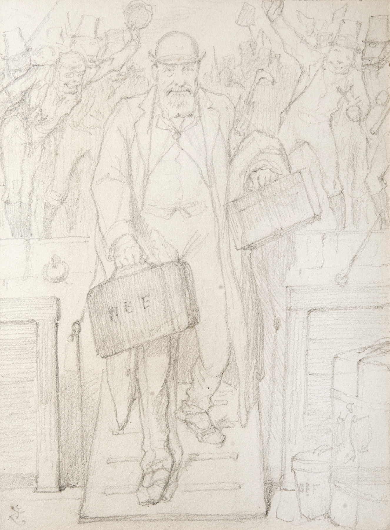 William Edward Forster was a Liberal politician who served as Chief Secretary for Ireland from 1880 to 1882 in Prime Minister William Gladstone’s Liberal government. Tasked with suppressing the escalating unrest and violence fueled by the Irish Land League, he was hugely unpopular with Irish Nationalists and was nicknamed ‘Buckshot’ supposedly due to his ordering of police to fire on crowds. Following the arrest of Irish Nationalist politician and leader of the Home Rule League, Charles Stewart Parnell in October 1881, several attempts were planned and made on Forster’s life. On 2 May 1882, Parnell was released as part of the Kilmainham Treaty, after renouncing violent extra-parliamentary action. Forster strongly opposed this decision, believing it undermined his efforts, and resigned in protest. Tenniel’s cartoon portrays William Edward Forster boarding a ship back to England, whilst the Irish population celebrates. His successor as Chief Secretary for Ireland, Lord Frederick Cavendish, was murdered by Irish Nationalists on the afternoon of his succession, just four days later on 6 May 1882.