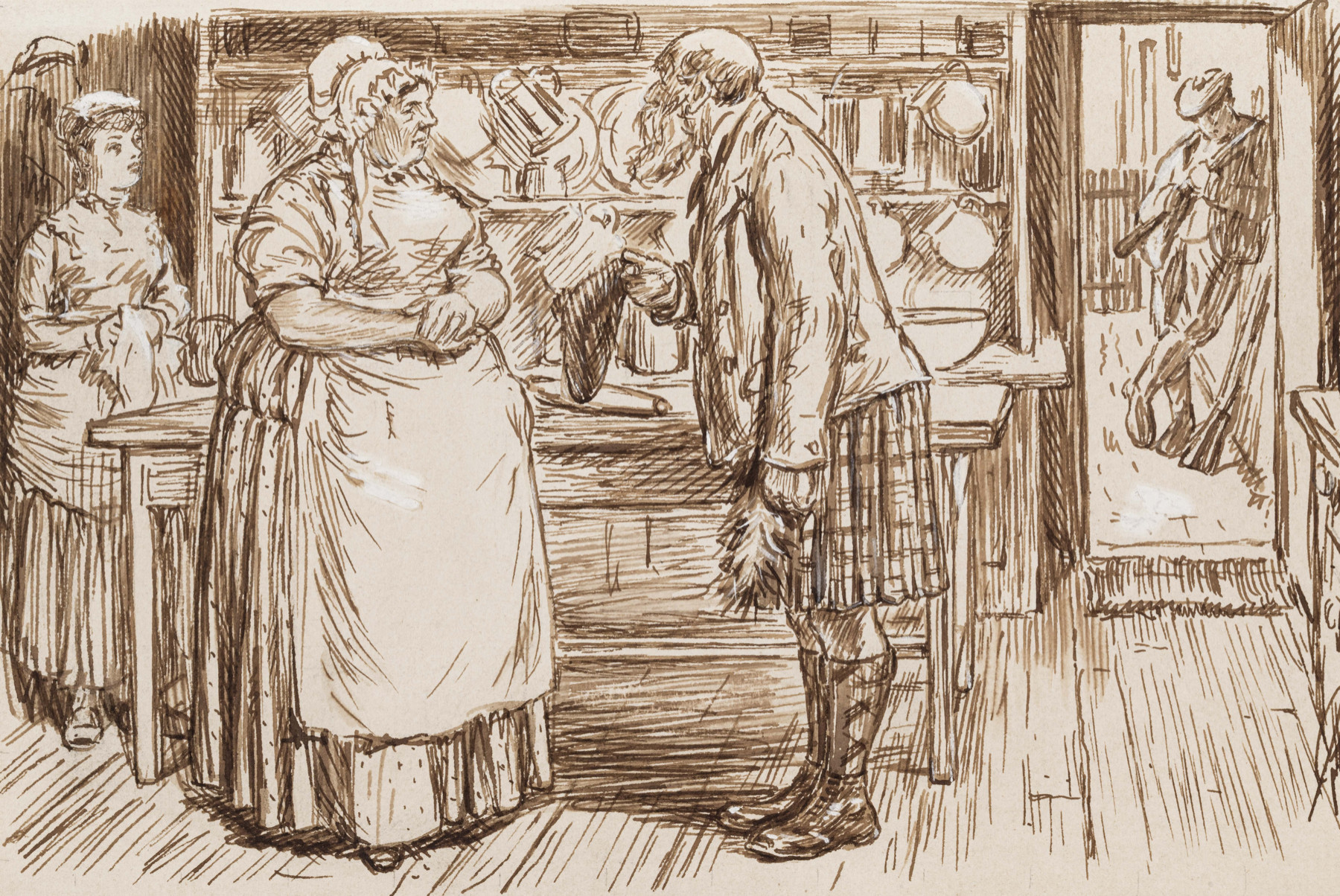Gamekeeper (with a sniff): Weel, gin ye’re no to be ‘cook,’ I’m nae to be ‘keeper’! Ye’ll be as gude as gie me ‘Maisther Forr-biss’!!