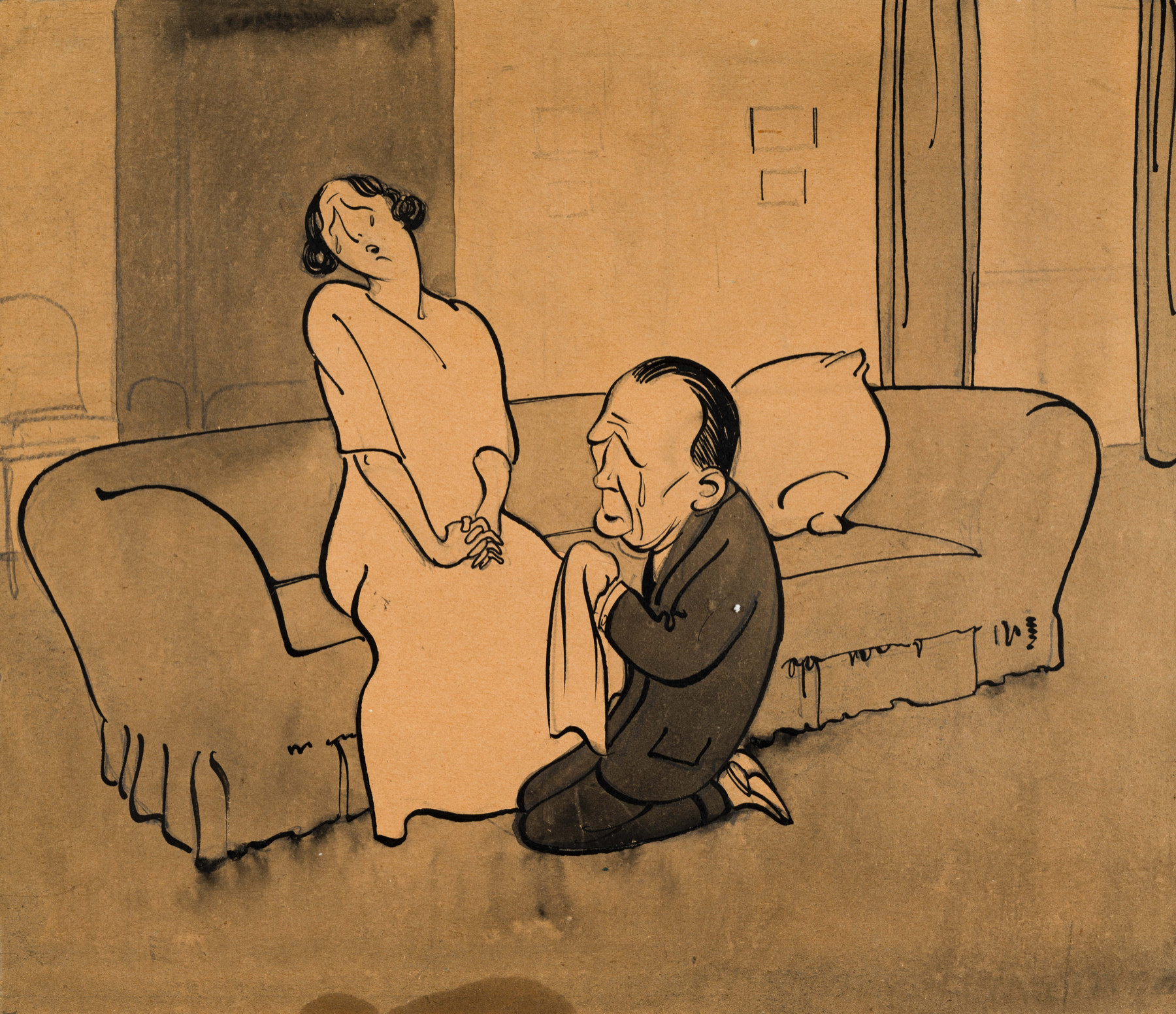 Irene Vanbrugh and Gerald du Maurier acted with each other in both stage and film productions throughout the height of their fame in the early 20th century. They are depicted here together by Bateman in an emotional scene.
