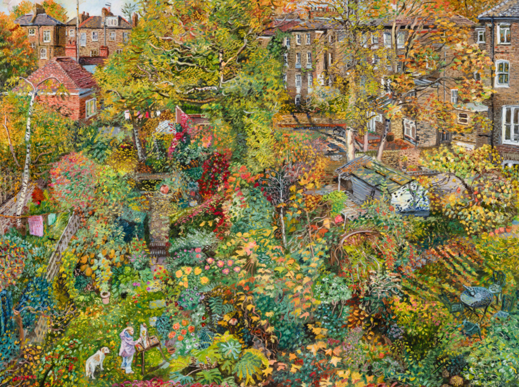 'Finished my autumn back garden view yesterday, painted over about 12 sessions of a few hours in the mornings. A race against time as the leaves were changing and blowing away! On sunny mornings the shadow of the house I’m painting from covers the garden straight in front but it still looks amazing with my neighbours wonderful gardening skills...'