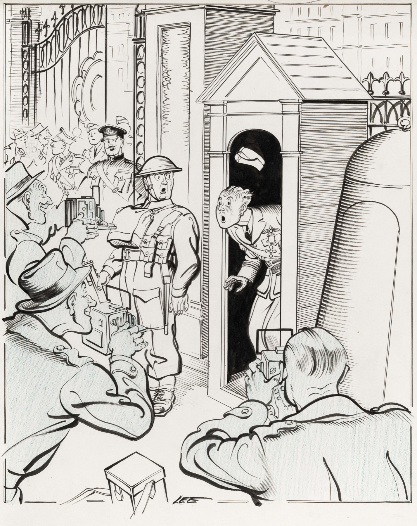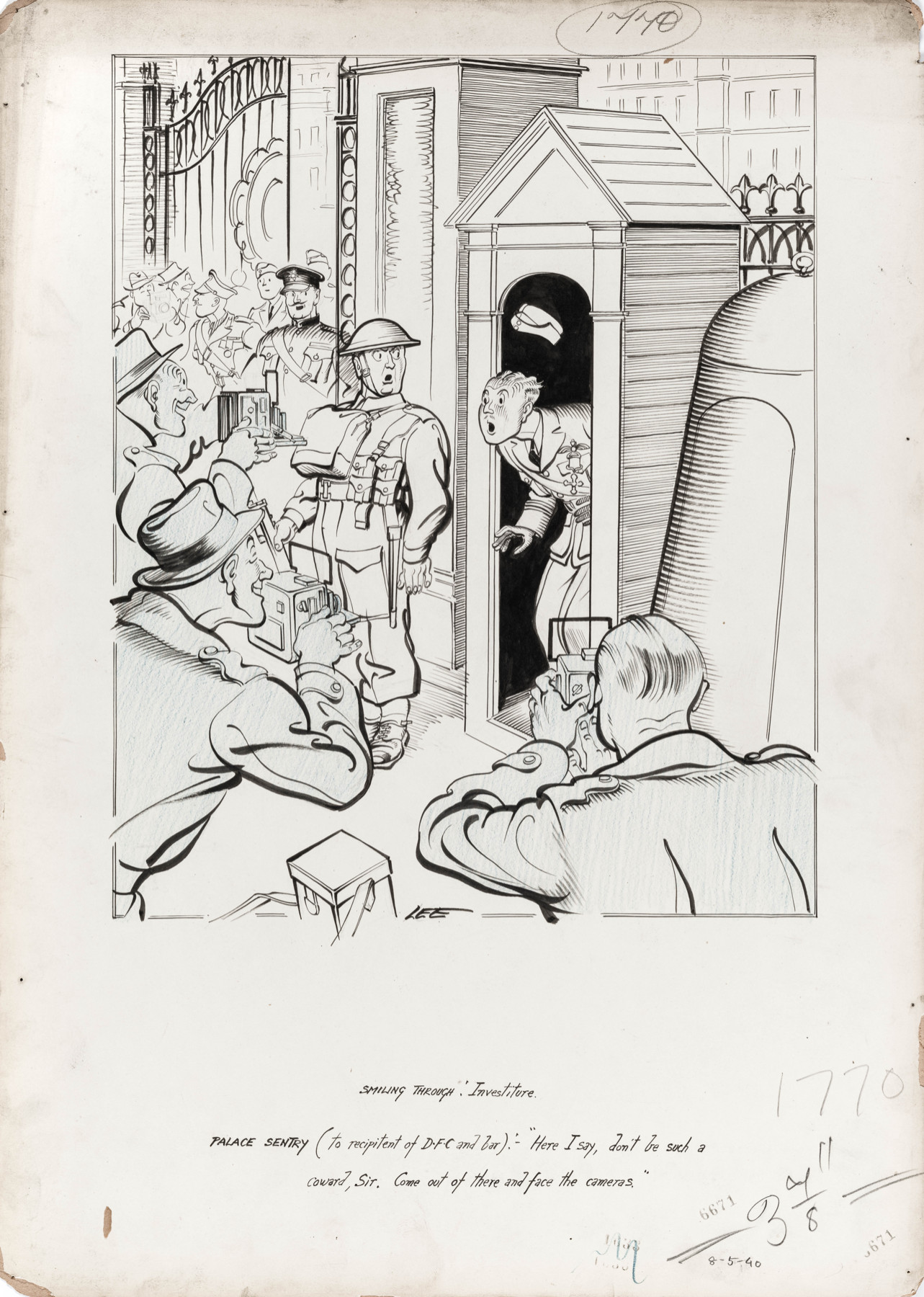Investiture Palace Sentry (to recipient of DFC and bar): 'Here I Say, Don't Be Such a Coward, Sir. Come Out of There and Face the Camera'