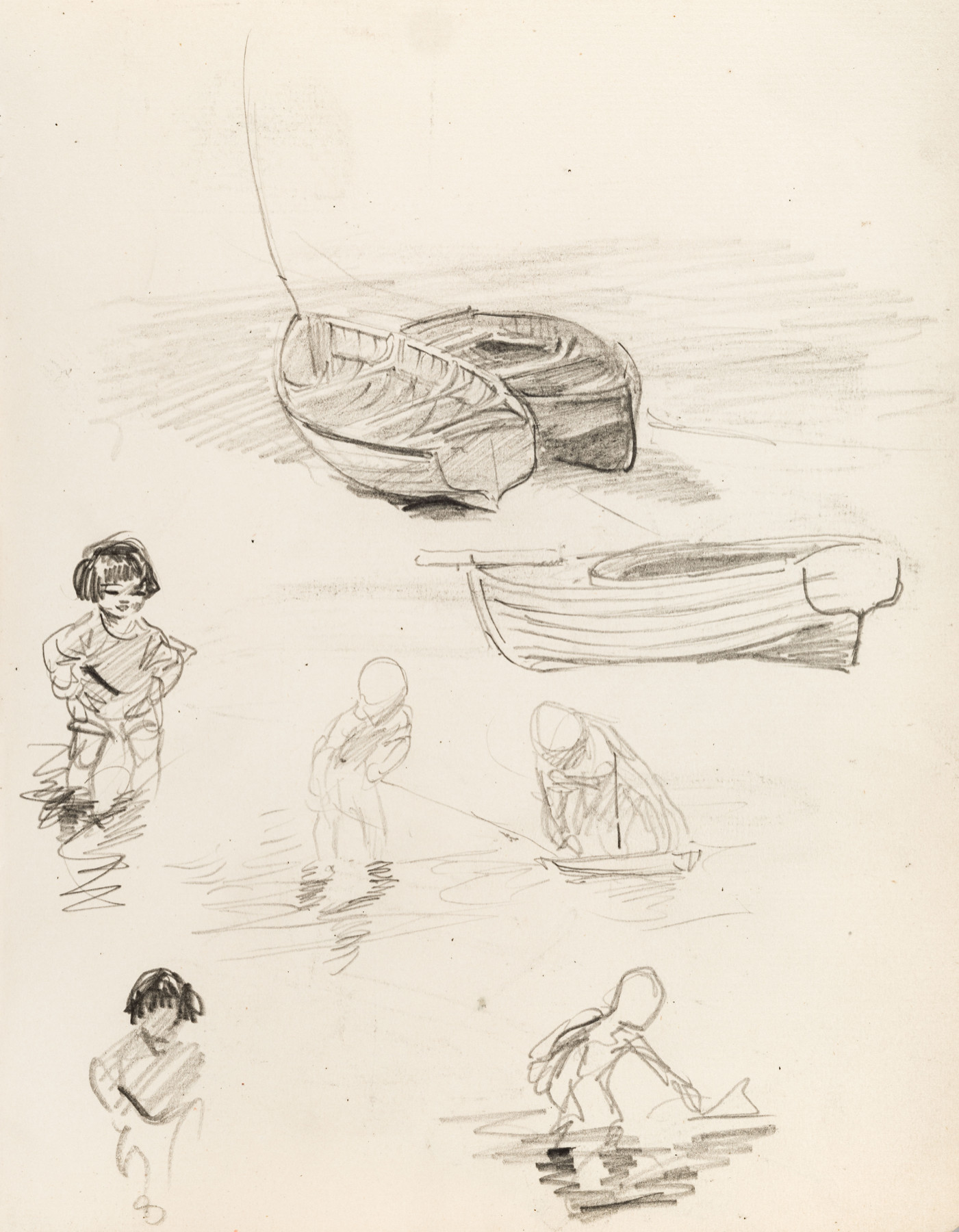 Boats on the Shore and Children Paddling