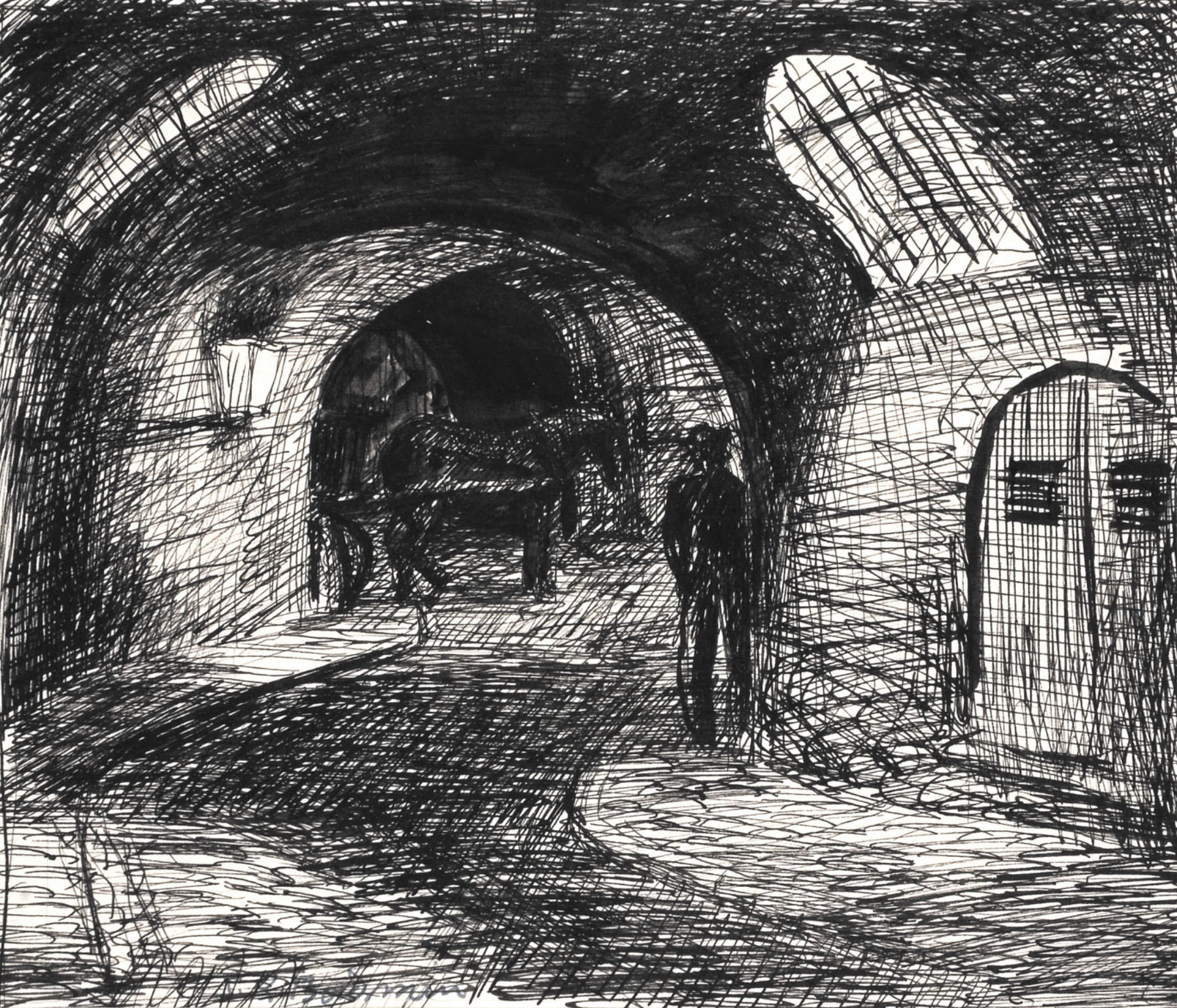 Tonal study for the etching 'The Adelphi Arches, Lower Robert St, London' c1936. Catalogue raisonné no 45.