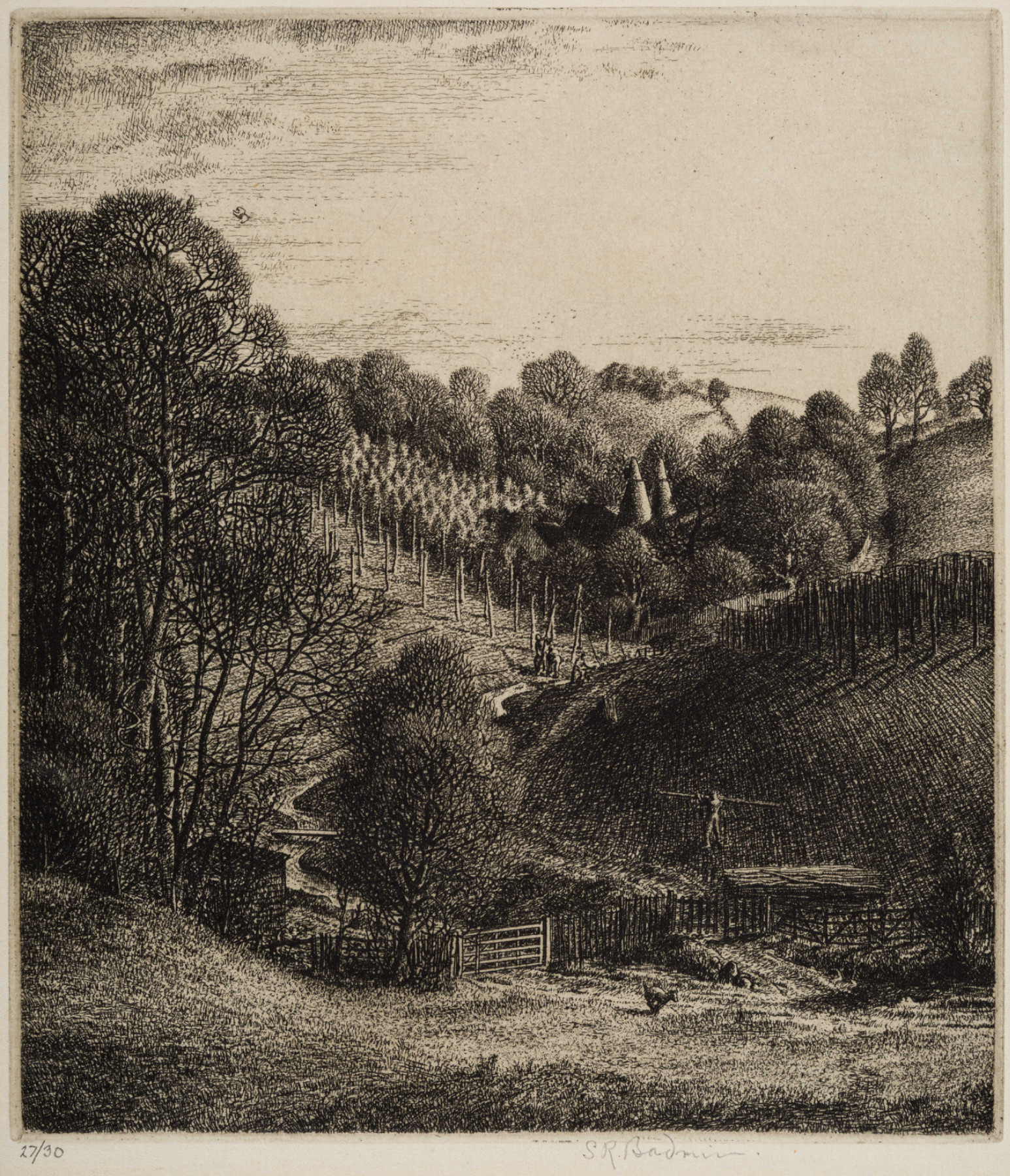 Published by the Twenty One Gallery, 1930. View near Riverhead and Pole Hill, near Sevenoaks, Kent. Also known as 'Hop Valley'.