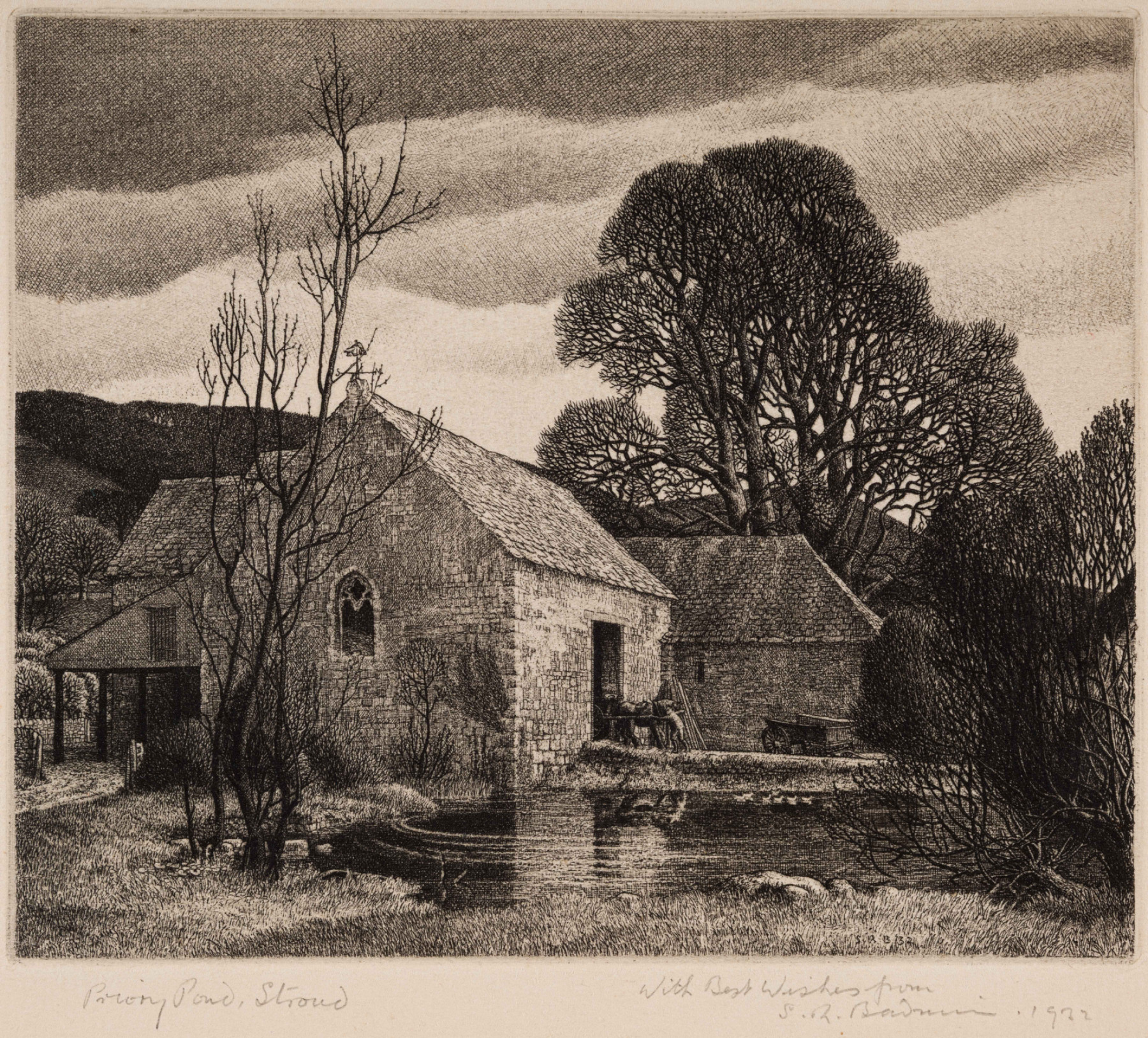 ‘S R Badmin, RWS, RE, ARCA, FSIA’, Worthing Art Gallery, November-December 1967, no 7, as 'Priory Pond, Stroud';