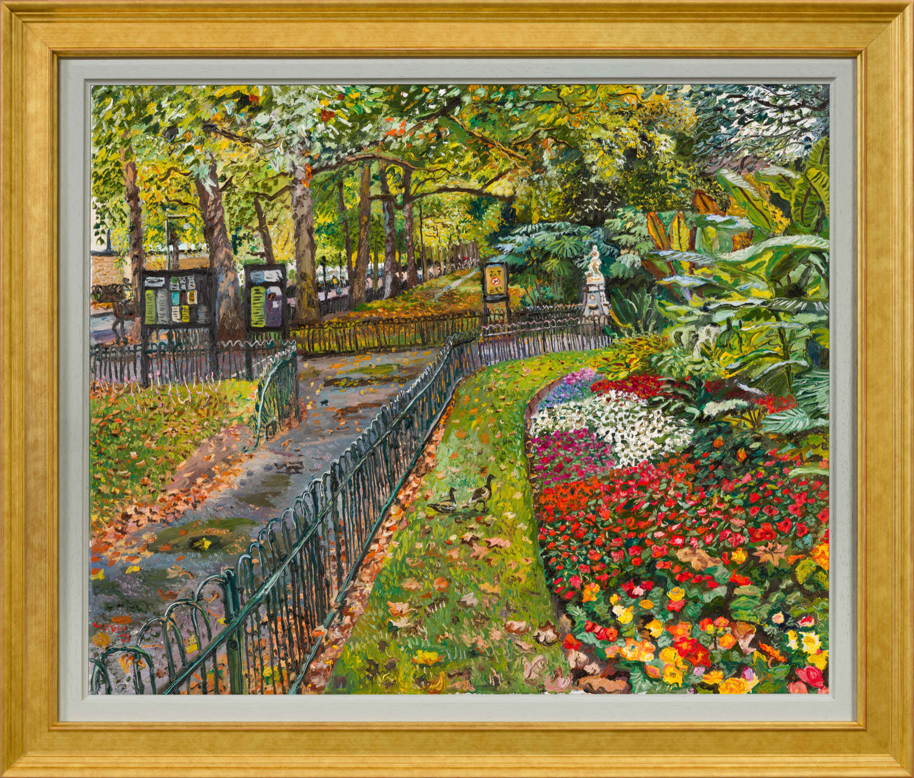 'Finished this painting of St James's Park painted on mostly rainy days, the rain brings out the colours of the flowers and the park is a bit more quiet. I love the incredible flower beds around this time of year in St James’s park.'