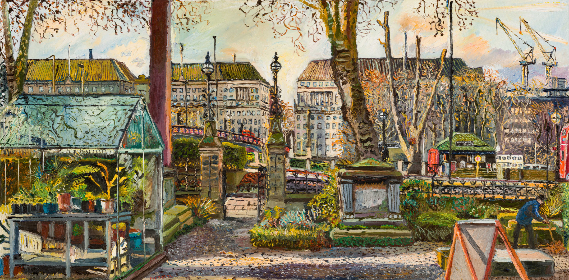 'A work in progress, from the last couple of sunny afternoons. Hopefully if there’s more of this lovely light I will finish it in time to be my last painting of 2025, another view from the Garden Museum.' Melissa Scott-Miller, December 2025