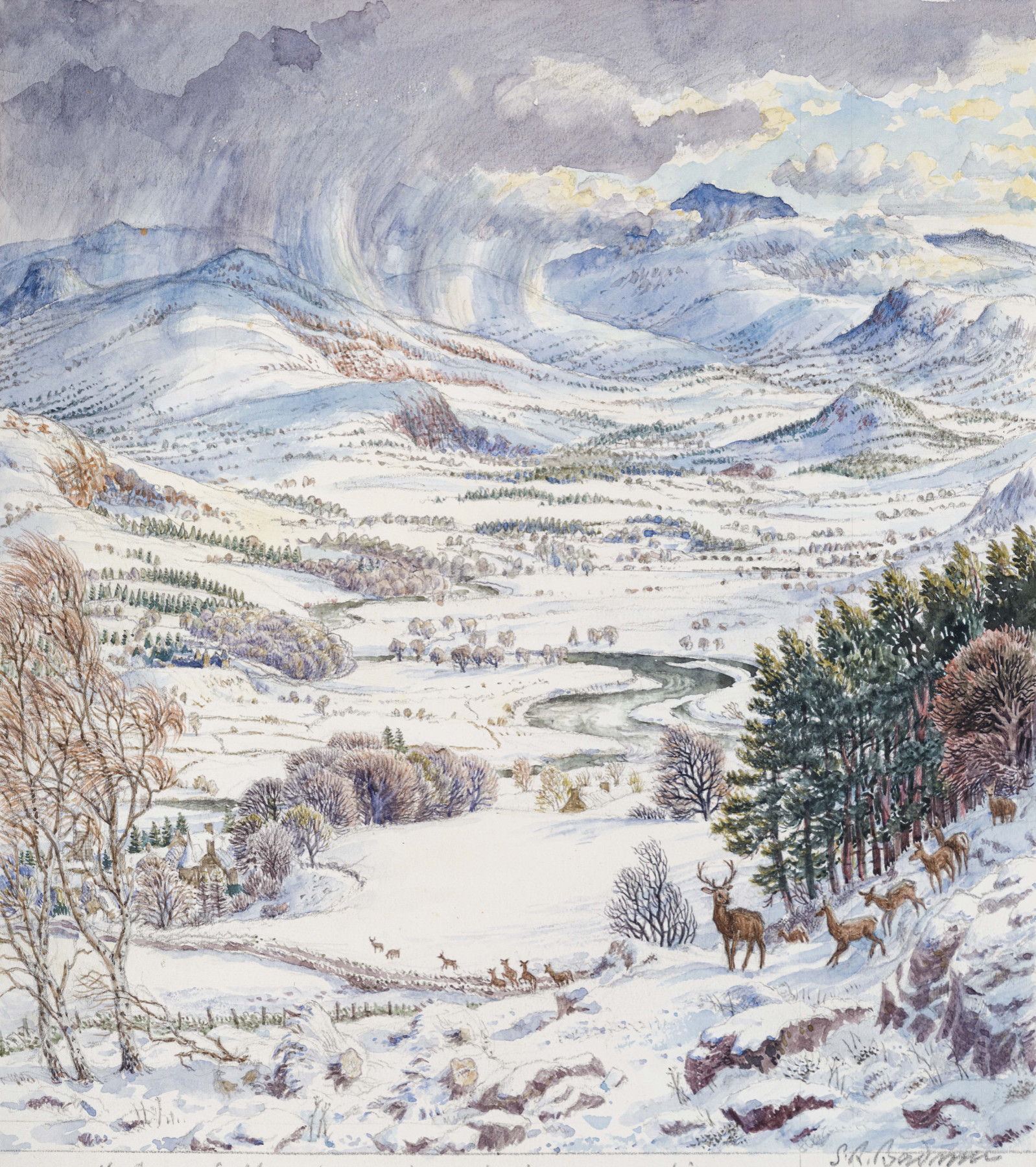 Probably the work exhibited at Lannards Gallery, Billingshurst, W Sussex, 1988, no 6 as 'Spey Valley, Scotland';