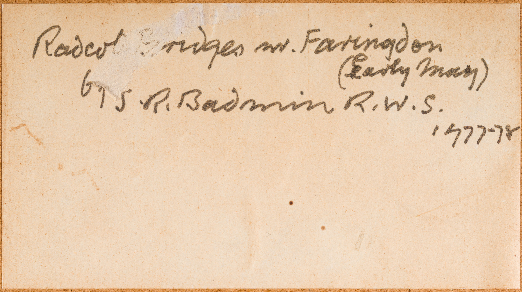 Signed, inscribed 'Radcote Bridges' and dated 1977 Signed, inscribed 'Radcote Bridges' and dated 1978 on reverse Signed and inscribed with title on label on original backboard