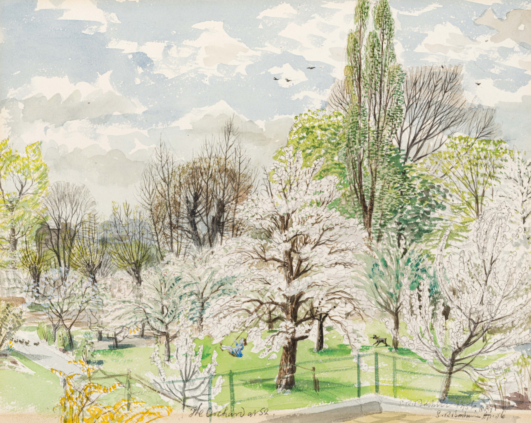 Signed twice, inscribed 'The Orchard at 52' and dated 'April May 1956'