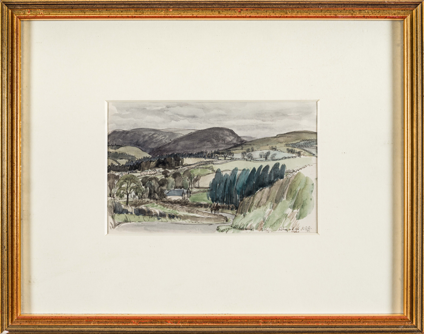 FramedA watercolour entitled 'Rhayader' was exhibited at the Royal Society of Painters in Water-colours, Spring 1942, no 119